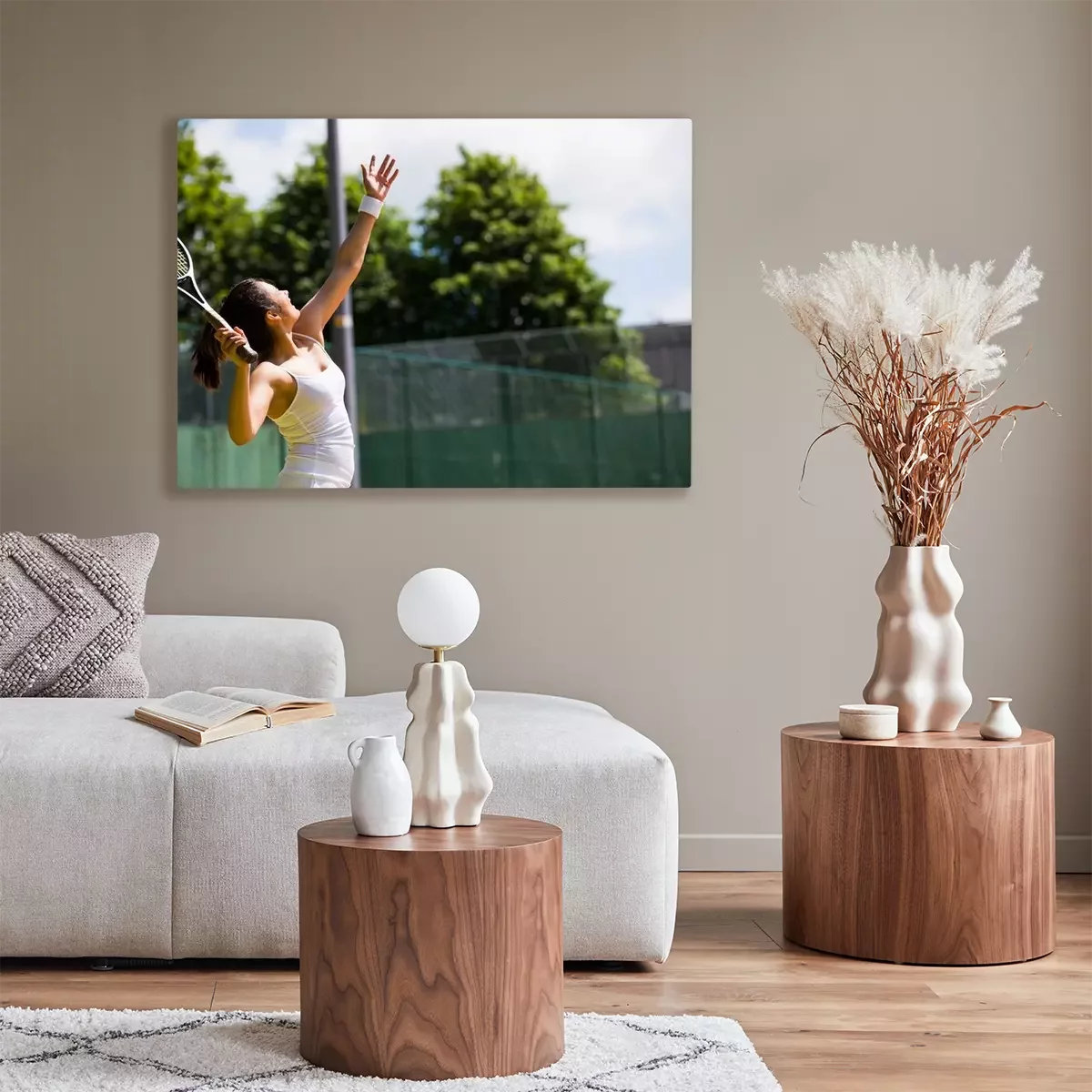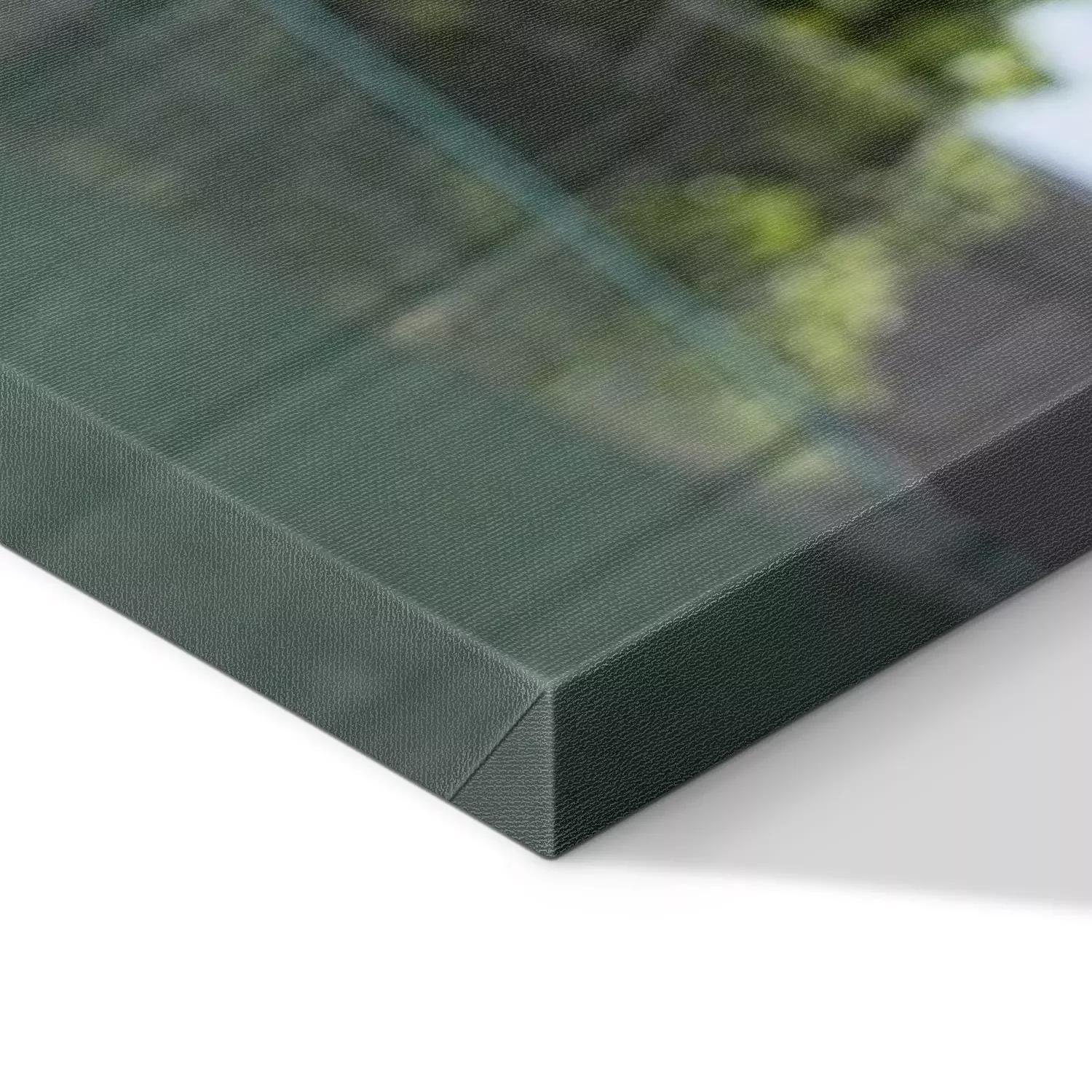 De print wordt aangebracht op hoogwaardig canvas dat op een schildersweefgetouw (spieraam) wordt gespannen. Omdat de print de zijranden bedekt, hoeft het ontwerp niet met een extra kader te worden omlijst. Wij raden ook composities aan die uit meerdere foto's bestaan en zo een coherente compositie vormen.