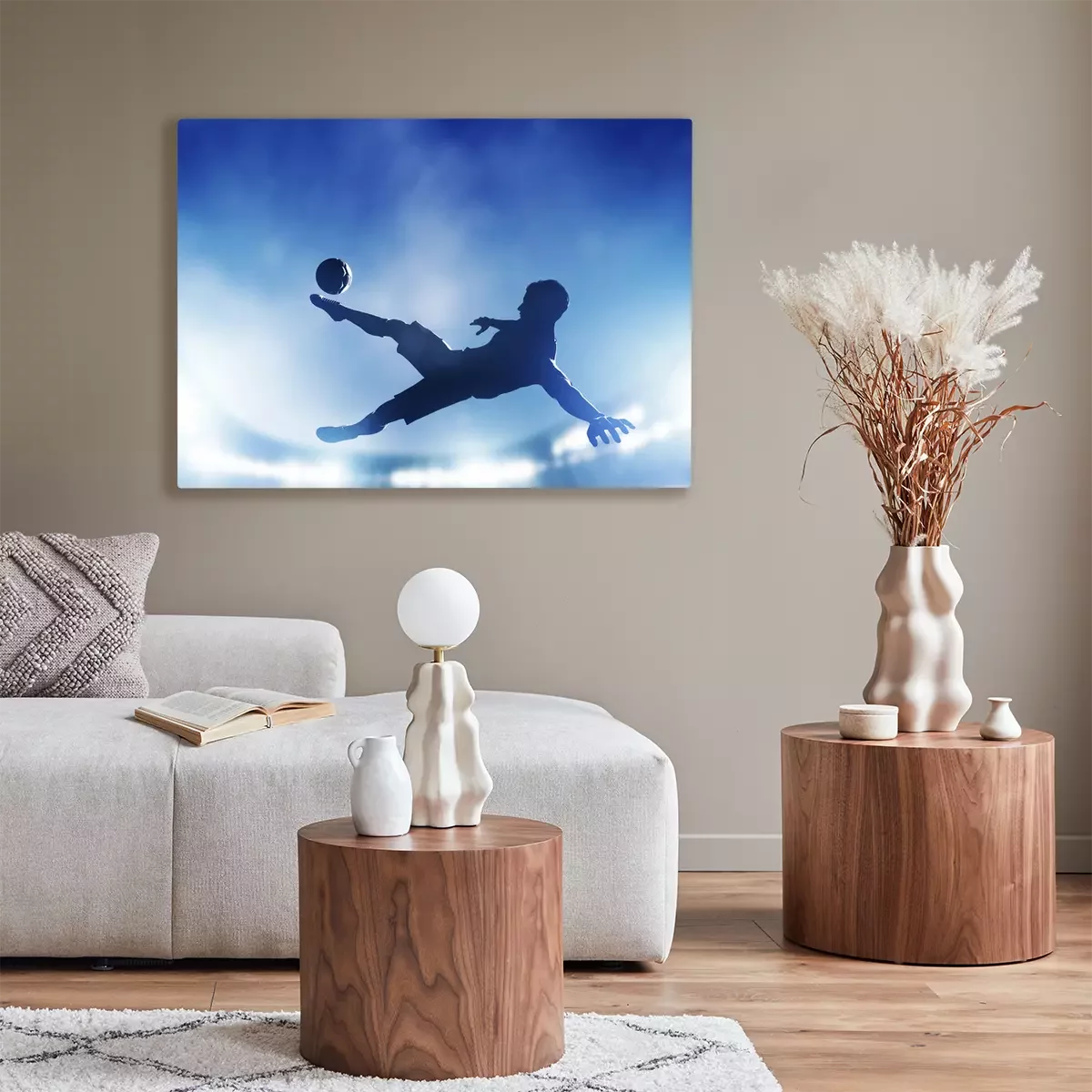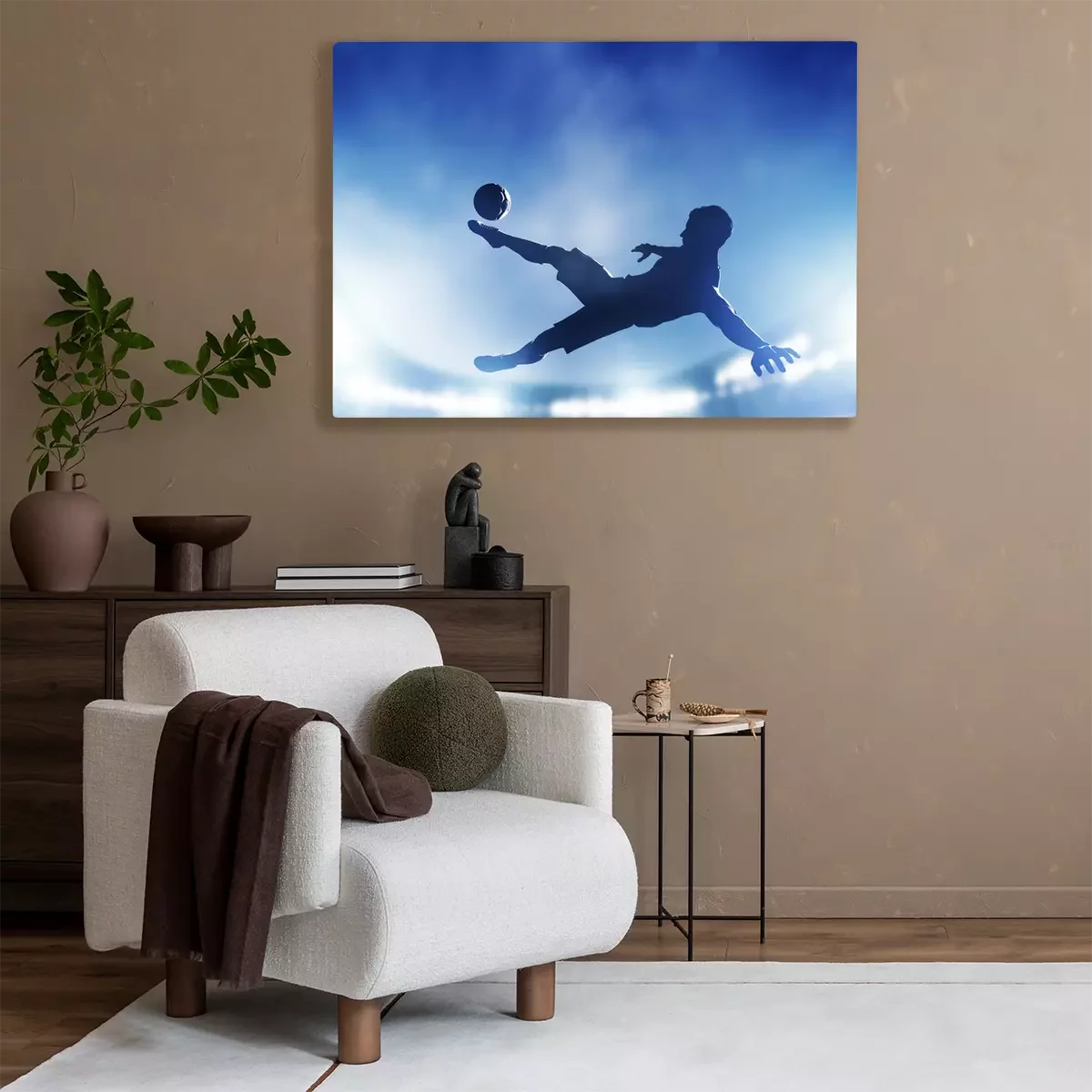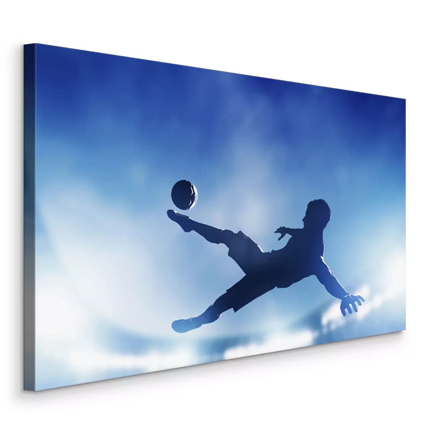 Canvas: professionele voetballer tegen blauwe achtergrond