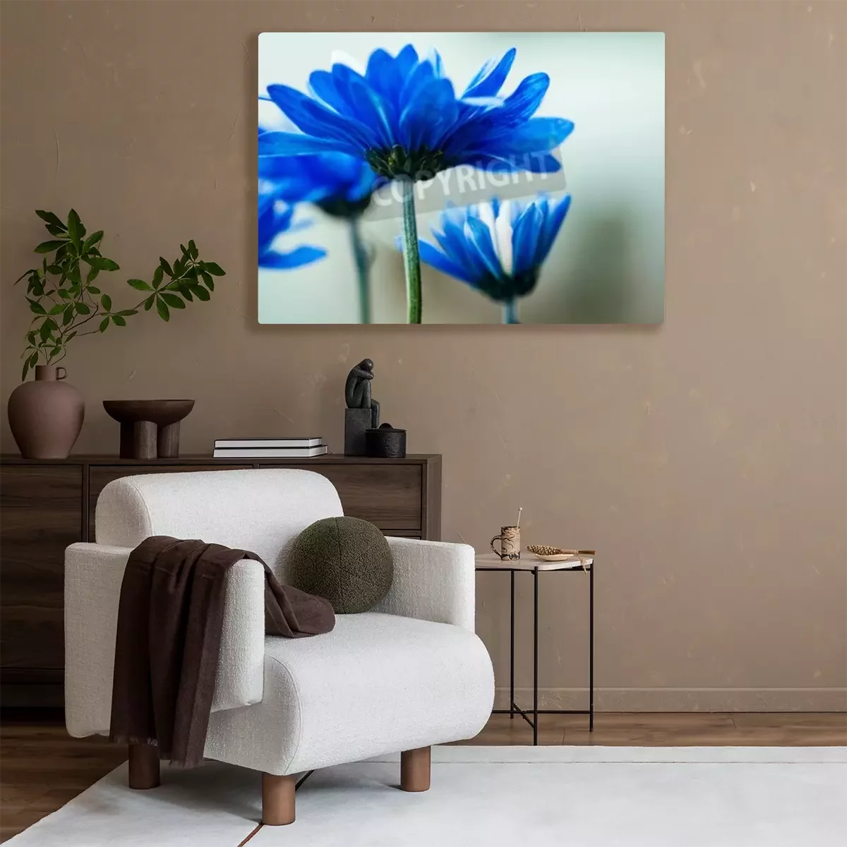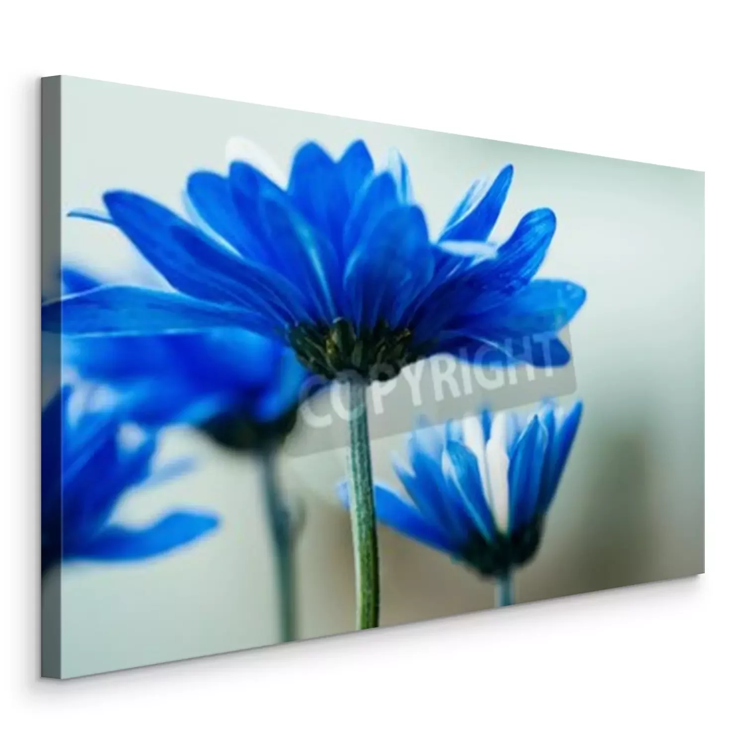 Canvas: Profiel macro weergave van verschillende blauwe madeliefjes in een tuin