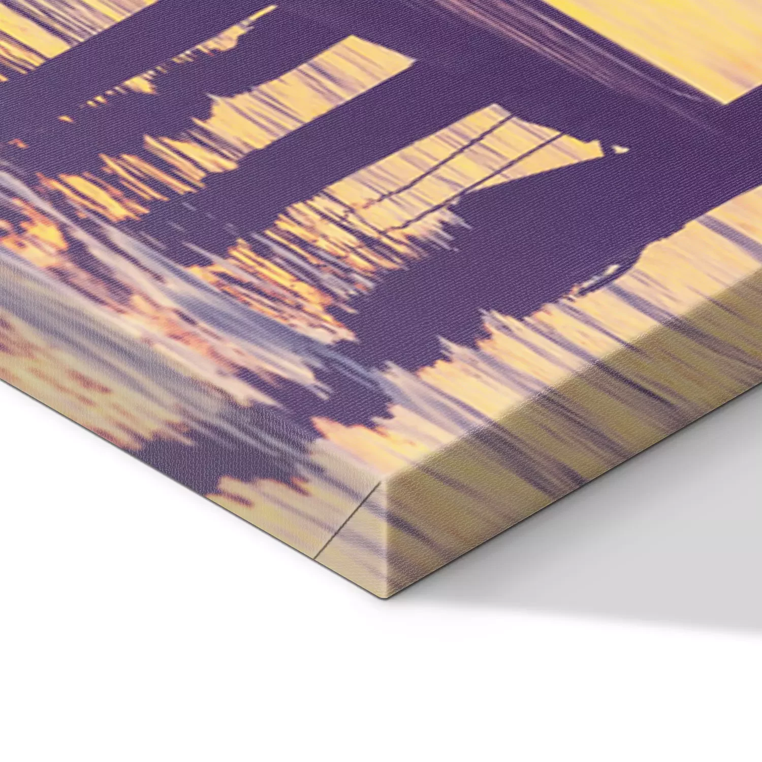 De print wordt aangebracht op hoogwaardig canvas dat op een schildersweefgetouw (spieraam) wordt gespannen. Omdat de print de zijranden bedekt, hoeft het ontwerp niet met een extra kader te worden omlijst. Wij raden ook composities aan die uit meerdere foto's bestaan en zo een coherente compositie vormen.