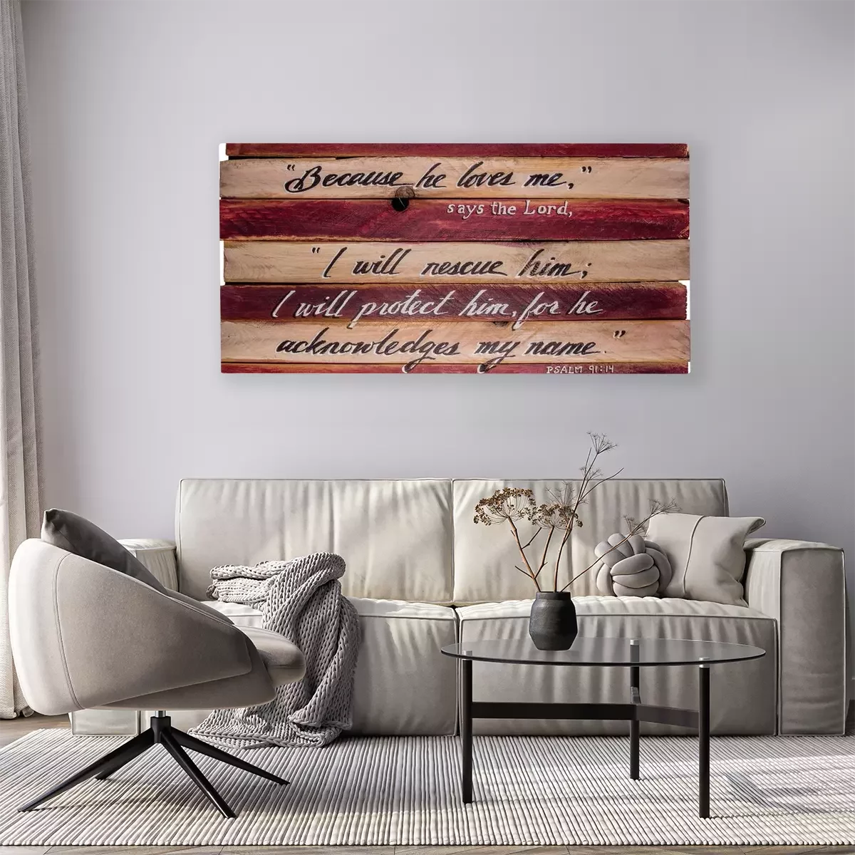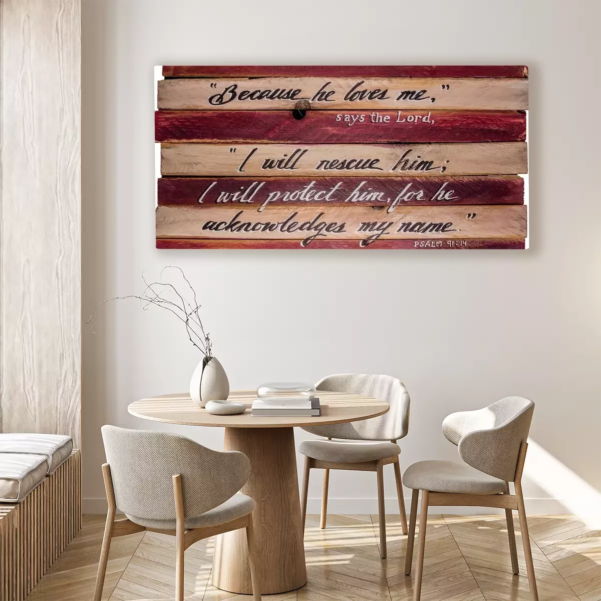 Canvas Psalm 91:14 hand geschilderd op houten shim canvas