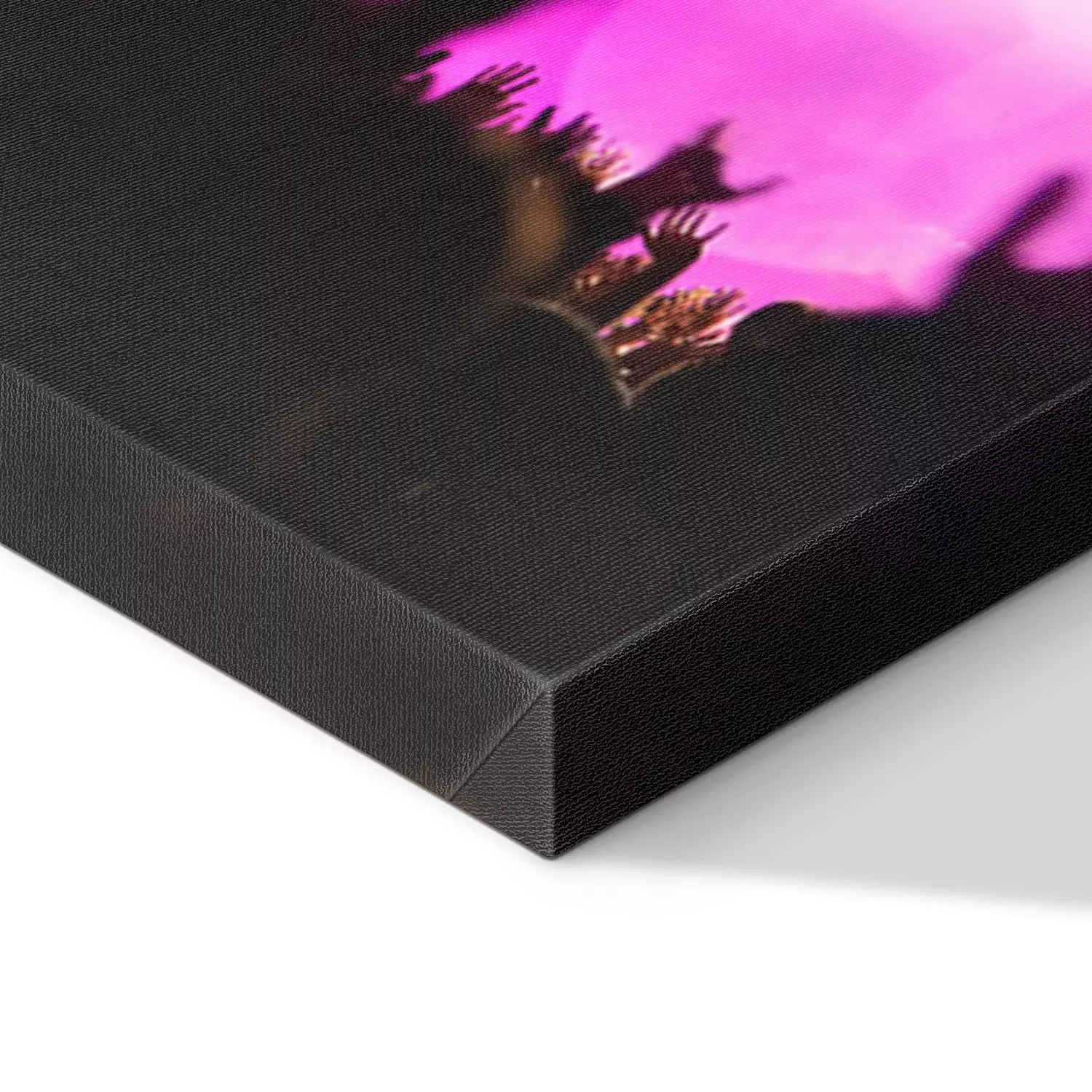 De print wordt aangebracht op hoogwaardig canvas dat op een schildersweefgetouw (spieraam) wordt gespannen. Omdat de print de zijranden bedekt, hoeft het ontwerp niet met een extra kader te worden omlijst. Wij raden ook composities aan die uit meerdere foto's bestaan en zo een coherente compositie vormen.
