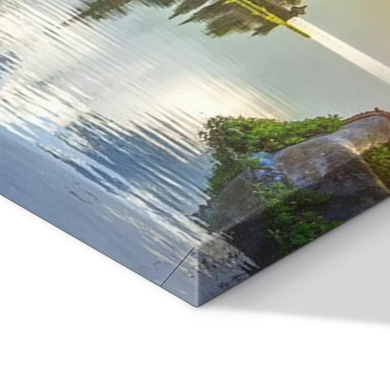 De print wordt aangebracht op hoogwaardig canvas dat op een schildersweefgetouw (spieraam) wordt gespannen. Omdat de print de zijranden bedekt, hoeft het ontwerp niet met een extra kader te worden omlijst. Wij raden ook composities aan die uit meerdere foto's bestaan en zo een coherente compositie vormen.