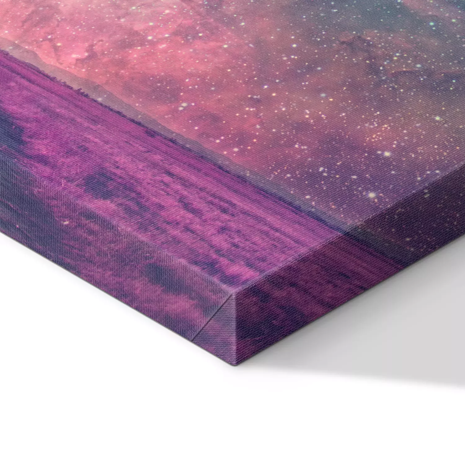 De print wordt aangebracht op hoogwaardig canvas dat op een schildersweefgetouw (spieraam) wordt gespannen. Omdat de print de zijranden bedekt, hoeft het ontwerp niet met een extra kader te worden omlijst. Wij raden ook composities aan die uit meerdere foto's bestaan en zo een coherente compositie vormen.