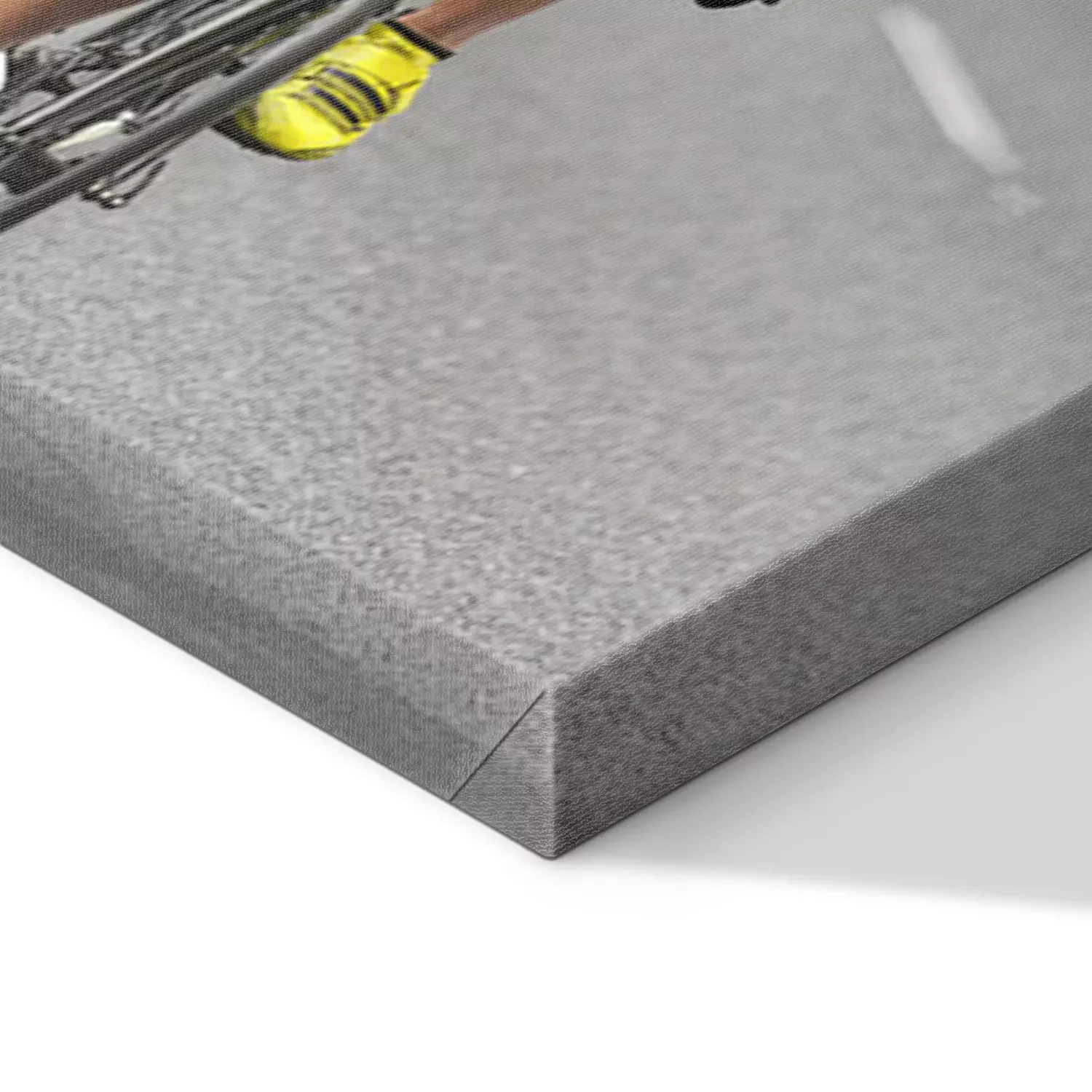 De print wordt aangebracht op hoogwaardig canvas dat op een schildersweefgetouw (spieraam) wordt gespannen. Omdat de print de zijranden bedekt, hoeft het ontwerp niet met een extra kader te worden omlijst. Wij raden ook composities aan die uit meerdere foto's bestaan en zo een coherente compositie vormen.