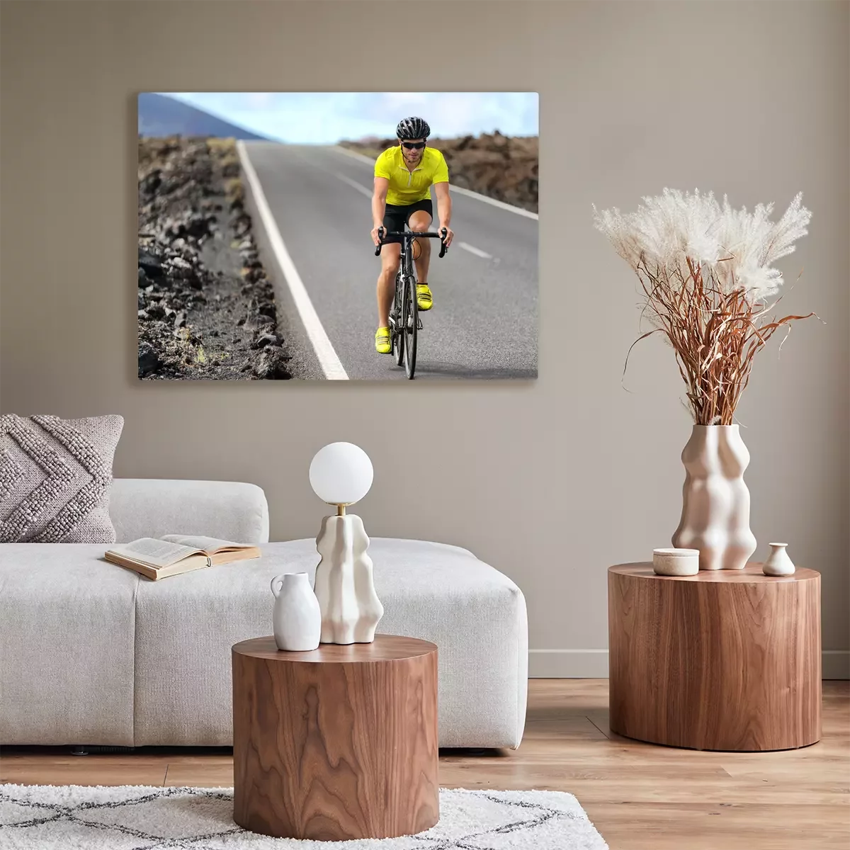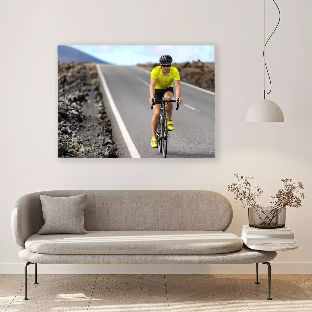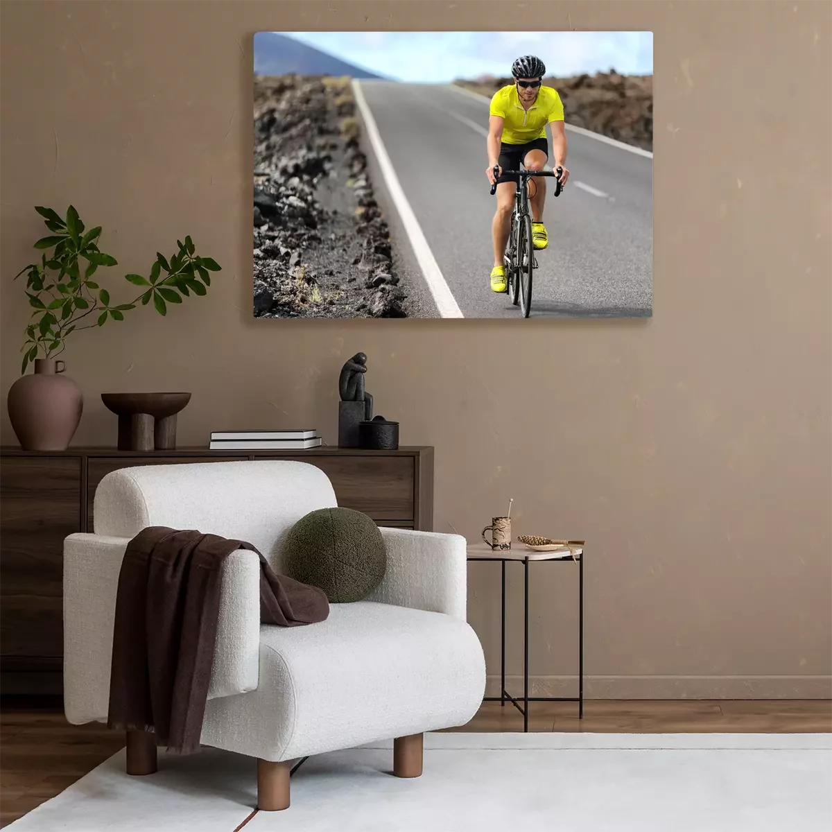 Canvas Racefiets wielrenner man fietsen. Fietsen Sport fitness atleet fietsen op racefiets. Actieve gezonde levensstijl sport atleet buiten opleiding voor triatlon.