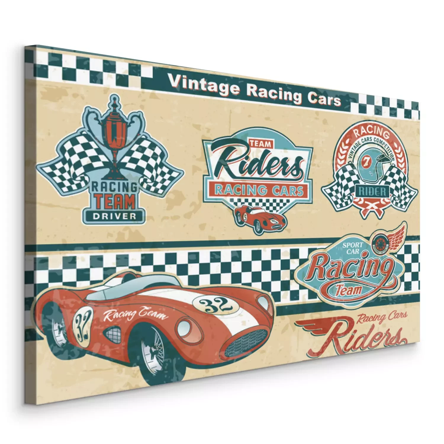 Canvas Racewagen vintage elementen