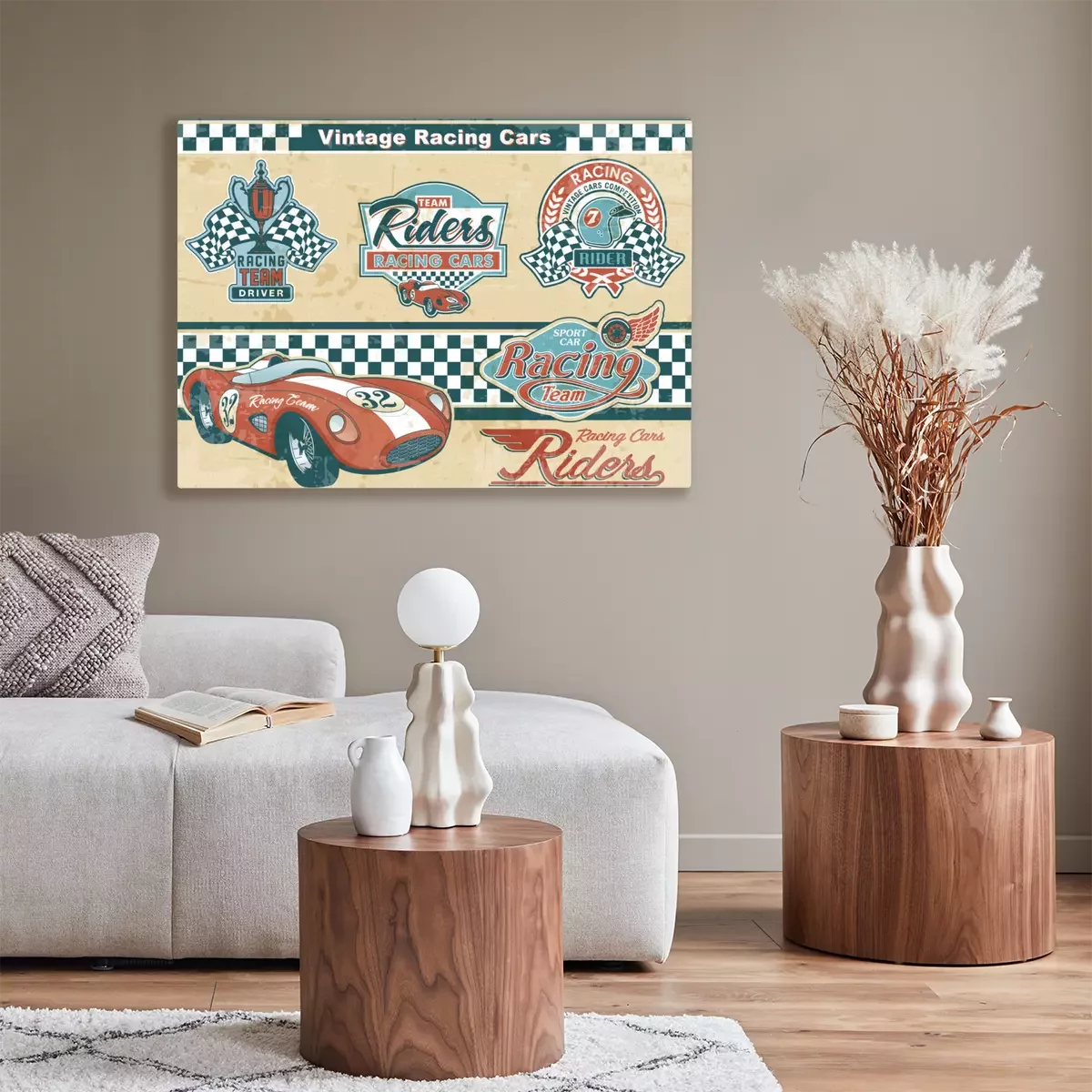 Canvas: Racewagen vintage elementen