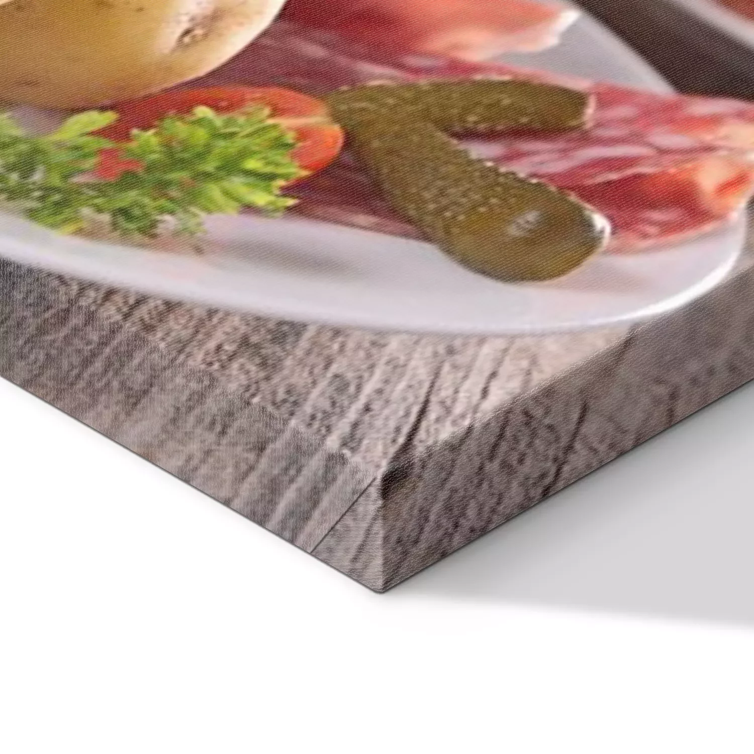 De print wordt aangebracht op hoogwaardig canvas dat op een schildersweefgetouw (spieraam) wordt gespannen. Omdat de print de zijranden bedekt, hoeft het ontwerp niet met een extra kader te worden omlijst. Wij raden ook composities aan die uit meerdere foto's bestaan en zo een coherente compositie vormen.