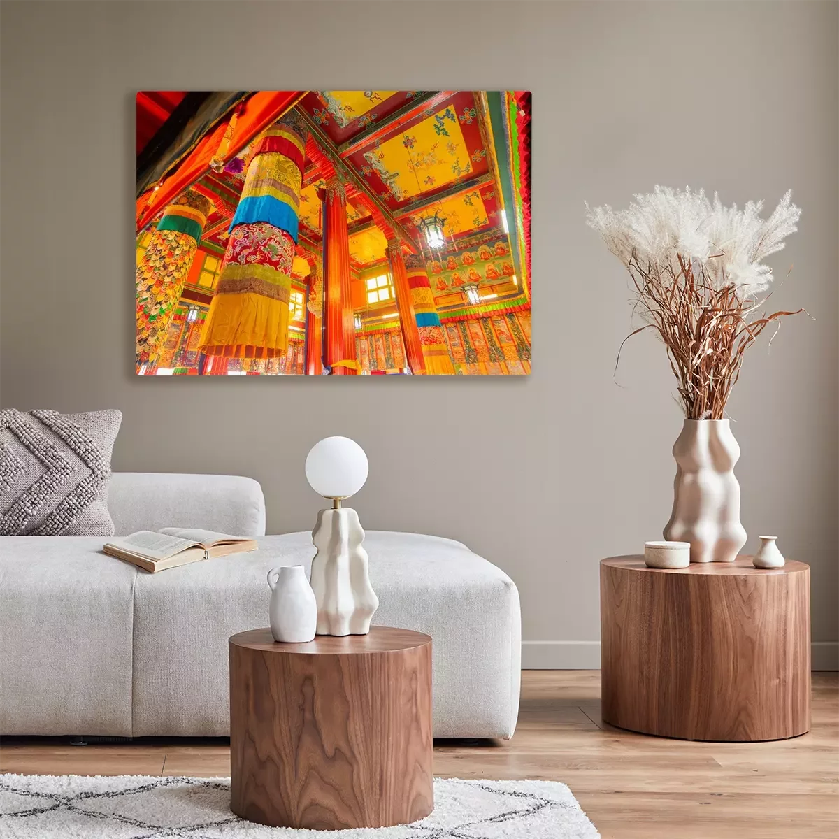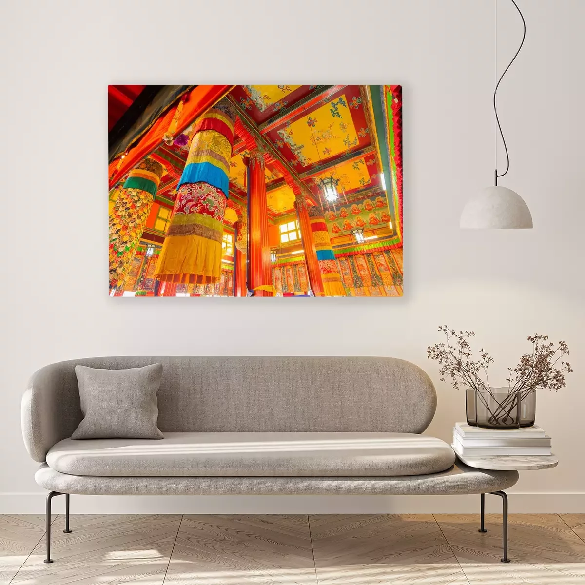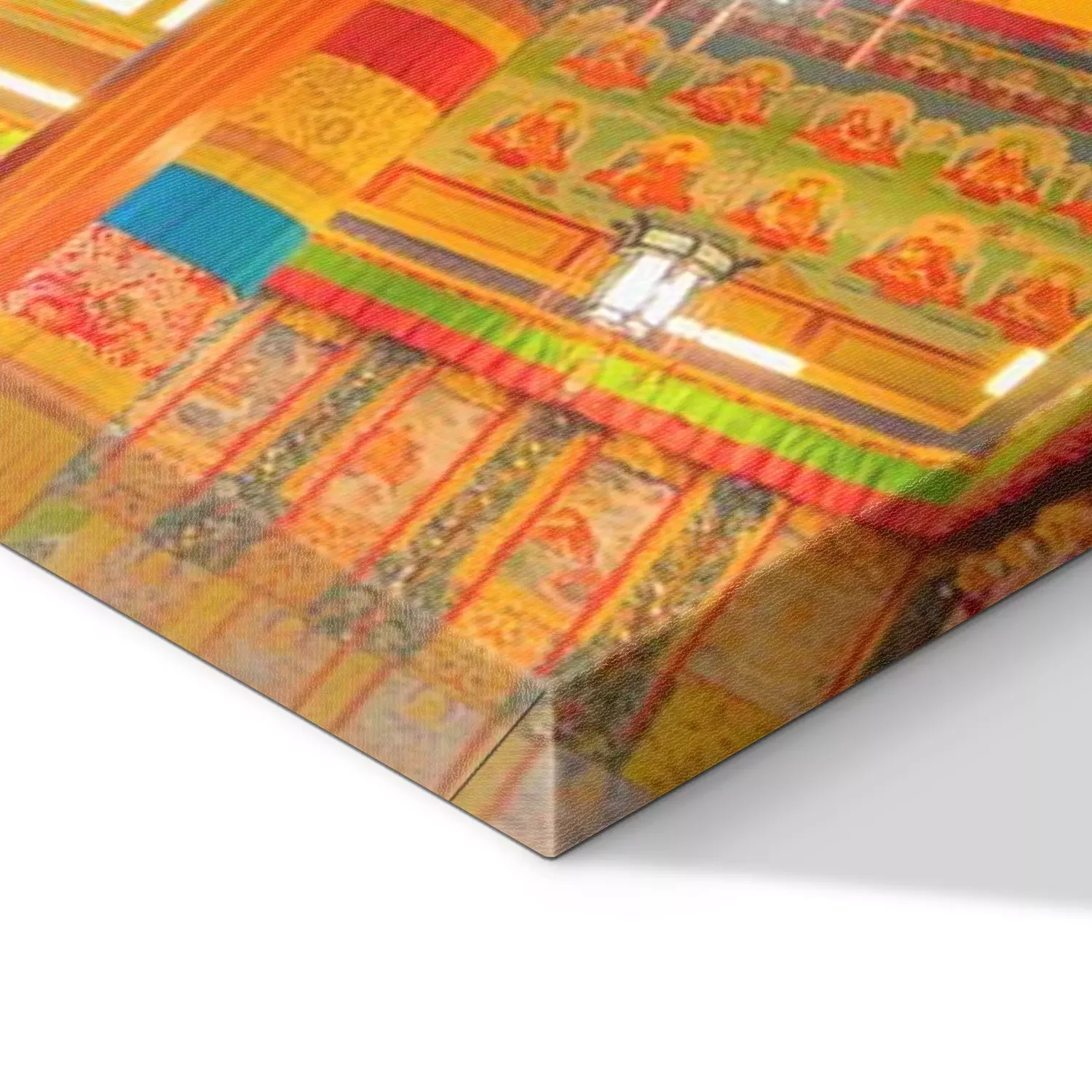De print wordt aangebracht op hoogwaardig canvas dat op een schildersweefgetouw (spieraam) wordt gespannen. Omdat de print de zijranden bedekt, hoeft het ontwerp niet met een extra kader te worden omlijst. Wij raden ook composities aan die uit meerdere foto's bestaan en zo een coherente compositie vormen.