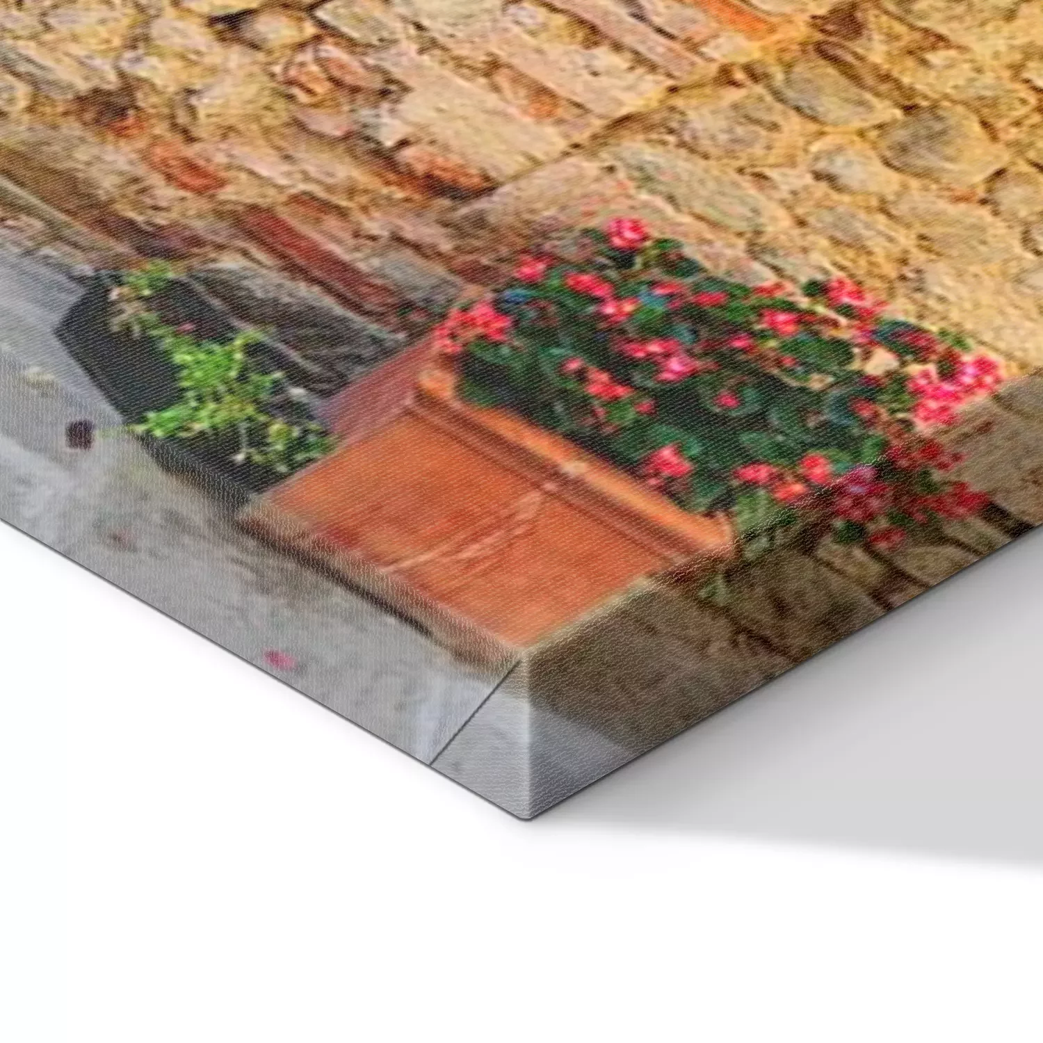 De print wordt aangebracht op hoogwaardig canvas dat op een schildersweefgetouw (spieraam) wordt gespannen. Omdat de print de zijranden bedekt, hoeft het ontwerp niet met een extra kader te worden omlijst. Wij raden ook composities aan die uit meerdere foto's bestaan en zo een coherente compositie vormen.