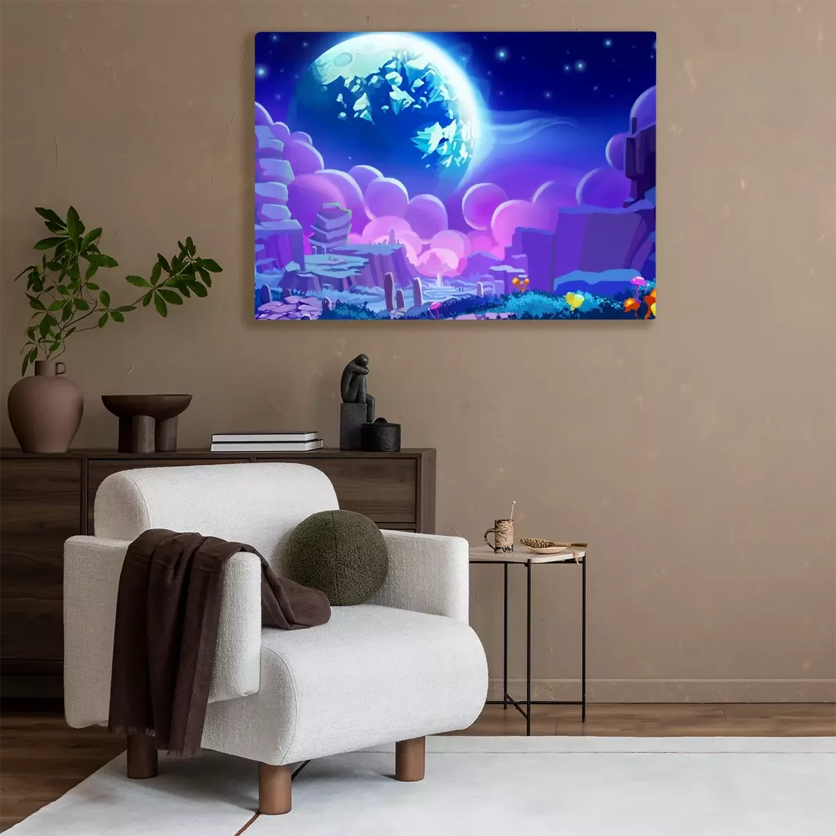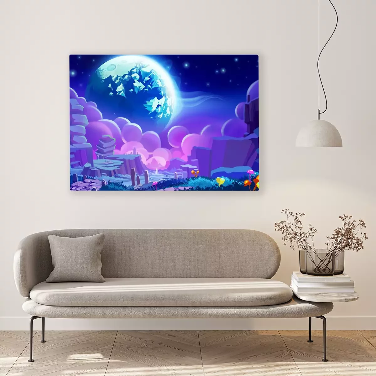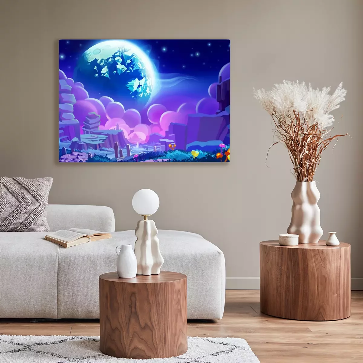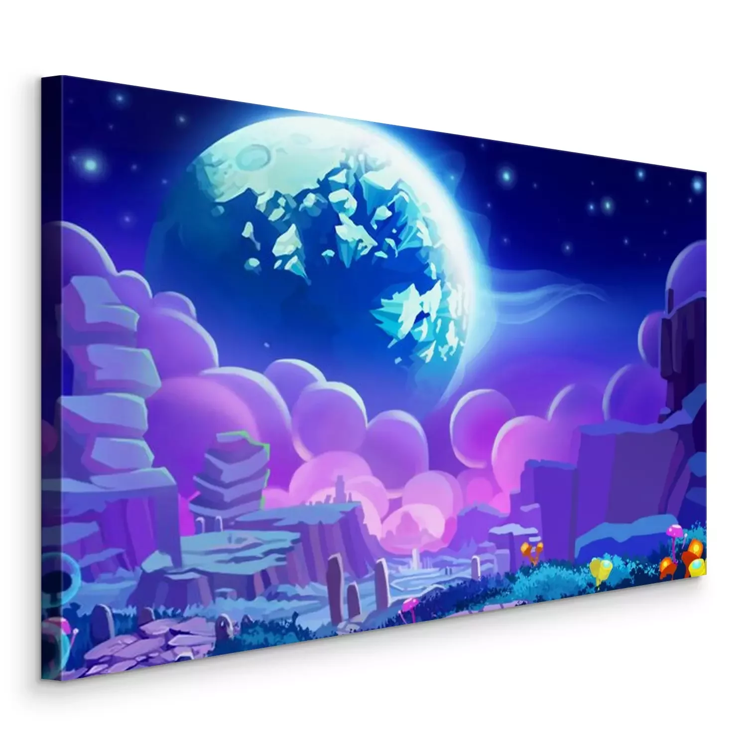 Canvas Realistische Cartoon Stijl. Sci-Fi Scene / Wallpaper / Achtergrond Design.