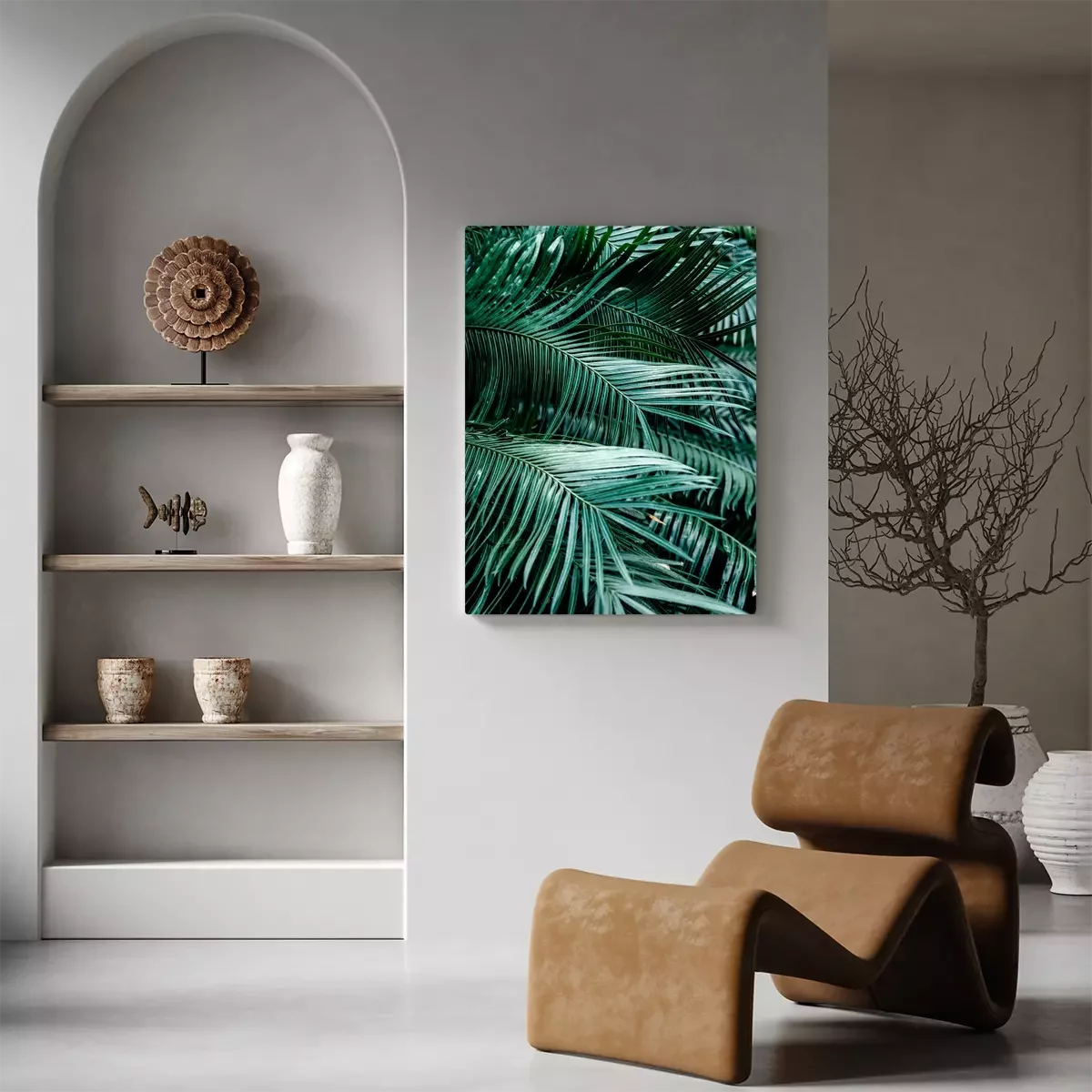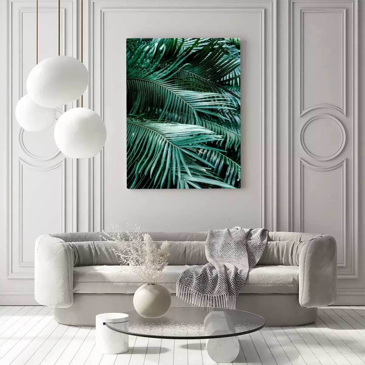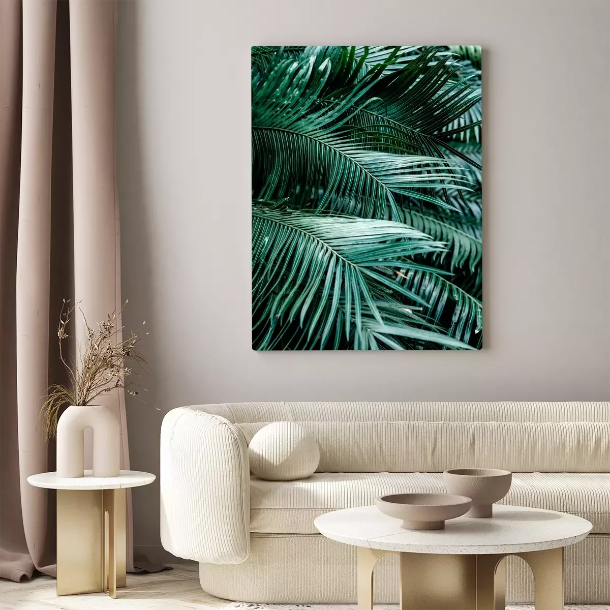 Canvas: Realistische weergave van donkergroene palmbladeren
