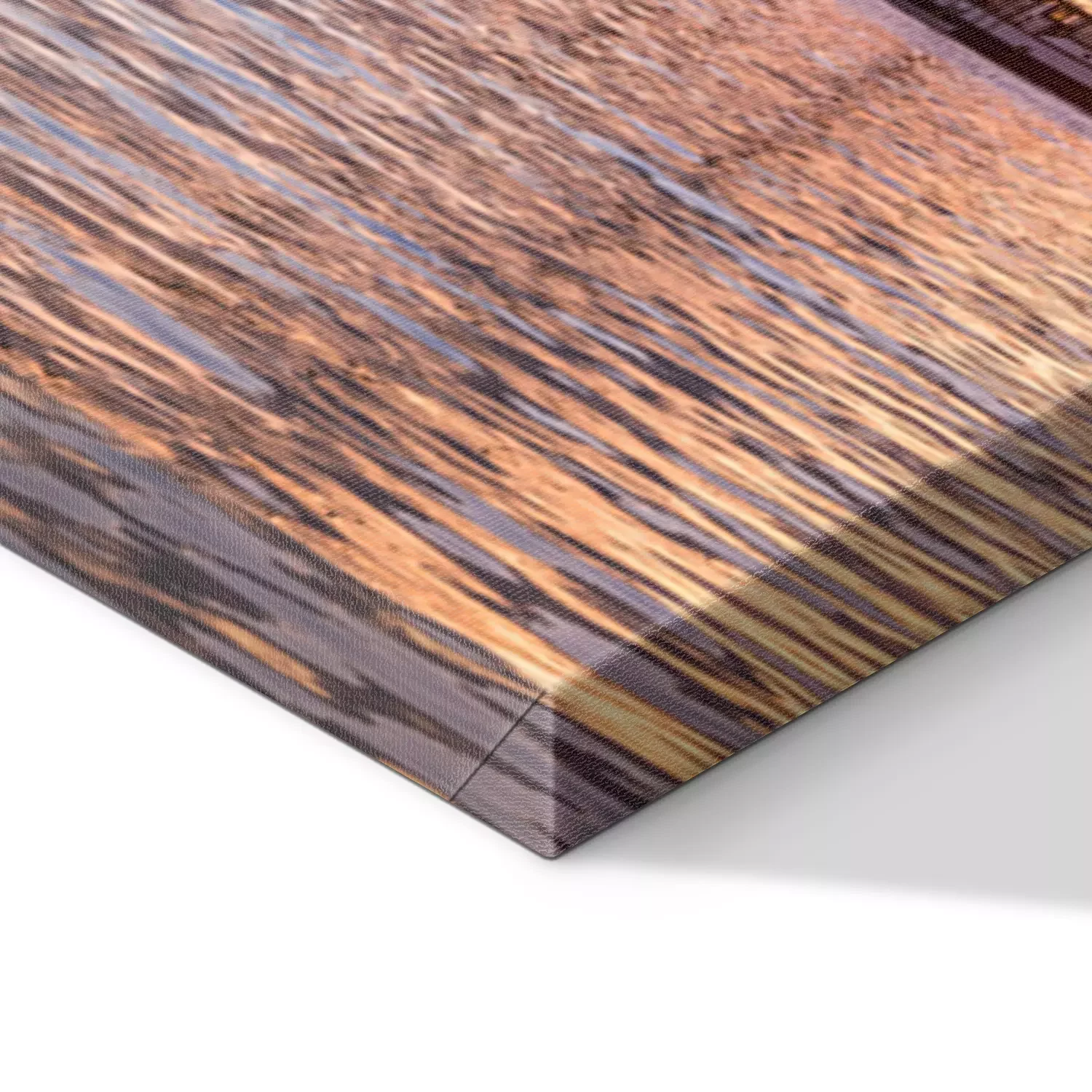 De print wordt aangebracht op hoogwaardig canvas dat op een schildersweefgetouw (spieraam) wordt gespannen. Omdat de print de zijranden bedekt, hoeft het ontwerp niet met een extra kader te worden omlijst. Wij raden ook composities aan die uit meerdere foto's bestaan en zo een coherente compositie vormen.