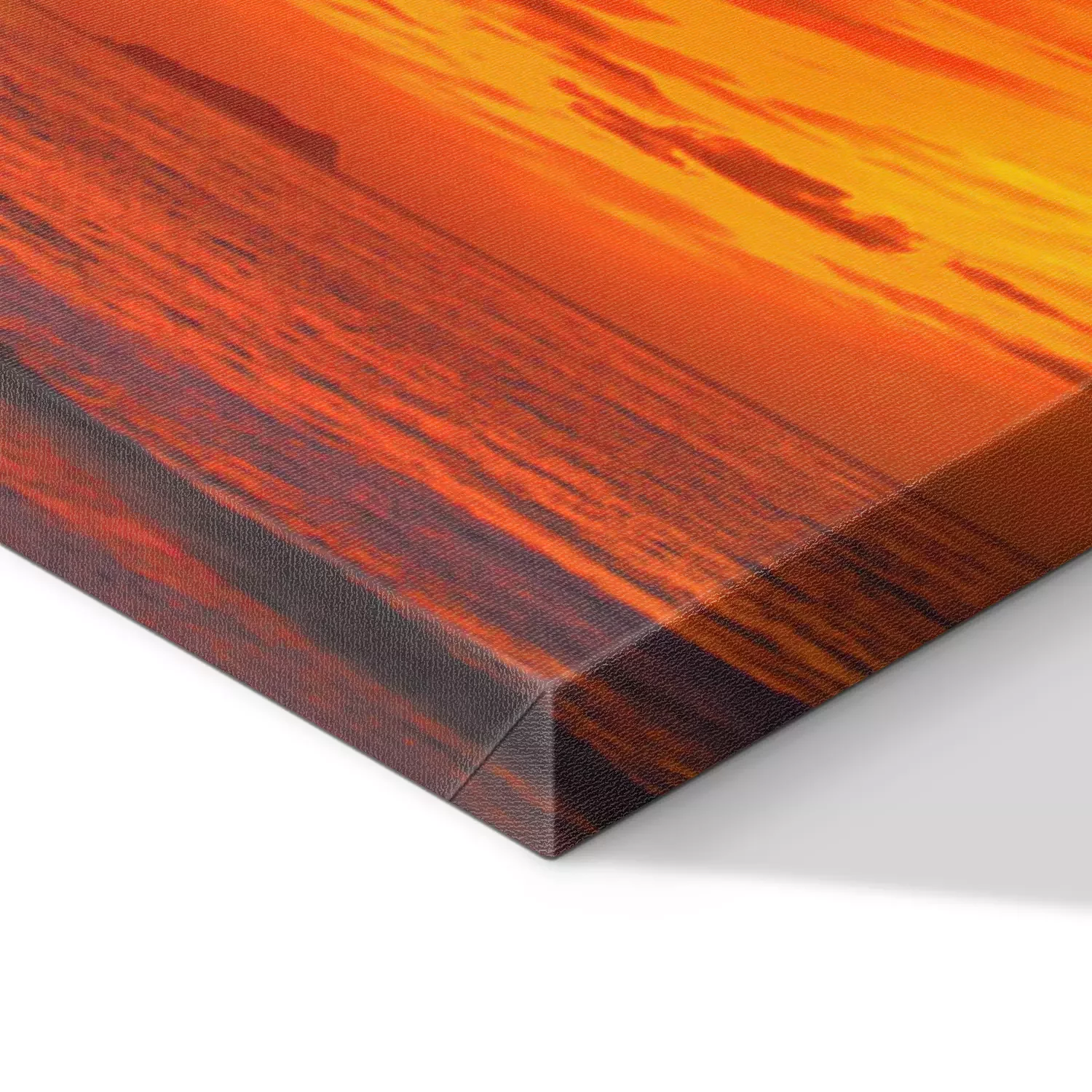 De print wordt aangebracht op hoogwaardig canvas dat op een schildersweefgetouw (spieraam) wordt gespannen. Omdat de print de zijranden bedekt, hoeft het ontwerp niet met een extra kader te worden omlijst. Wij raden ook composities aan die uit meerdere foto's bestaan en zo een coherente compositie vormen.