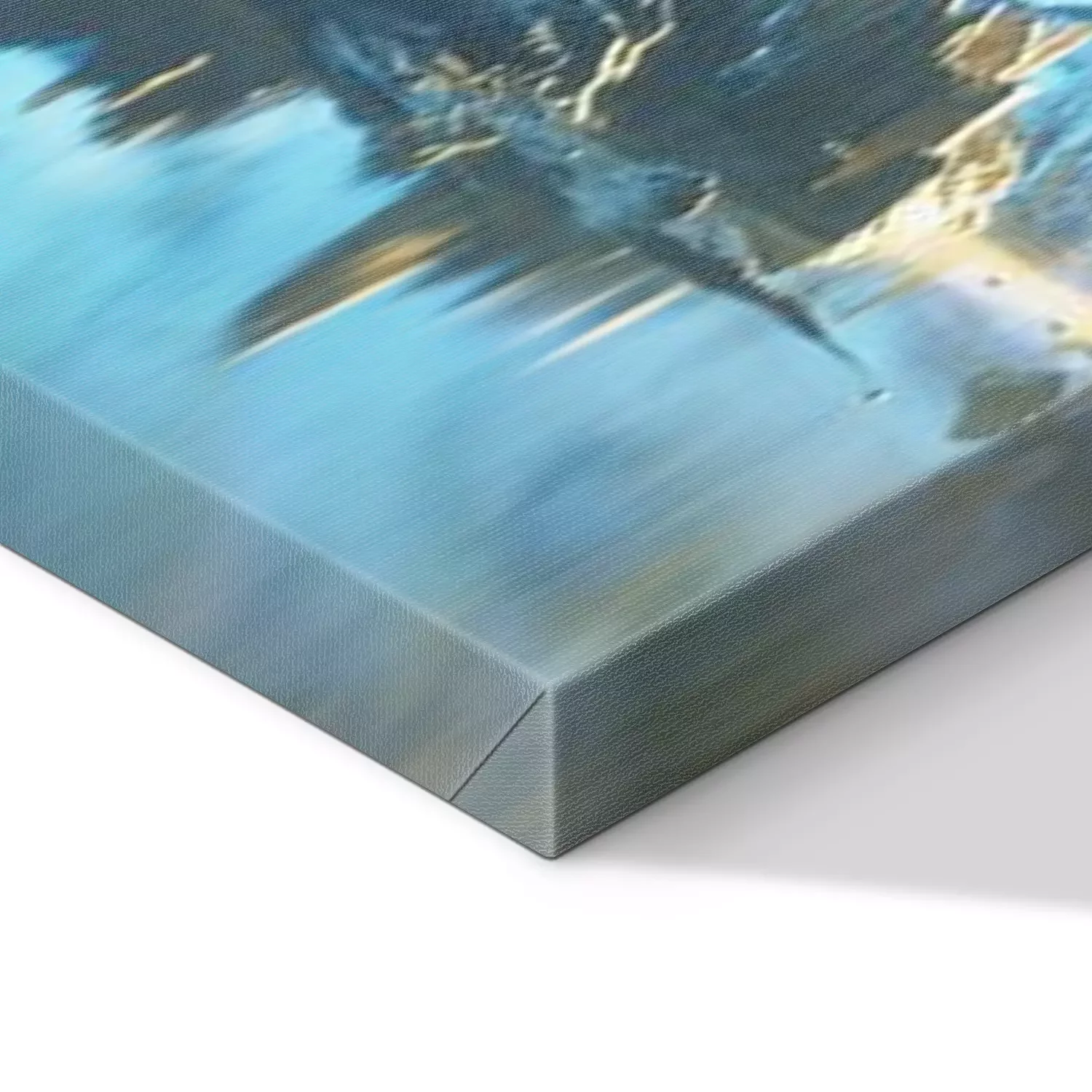 De print wordt aangebracht op hoogwaardig canvas dat op een schildersweefgetouw (spieraam) wordt gespannen. Omdat de print de zijranden bedekt, hoeft het ontwerp niet met een extra kader te worden omlijst. Wij raden ook composities aan die uit meerdere foto's bestaan en zo een coherente compositie vormen.