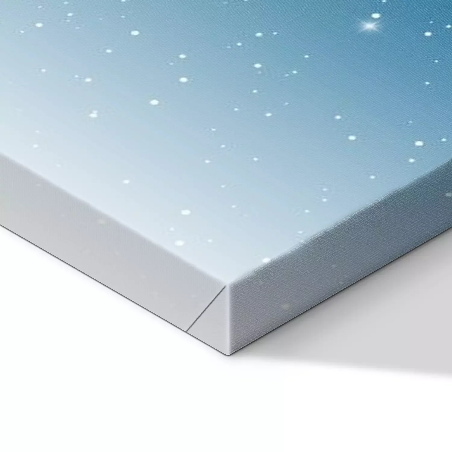 De print wordt aangebracht op hoogwaardig canvas dat op een schildersweefgetouw (spieraam) wordt gespannen. Omdat de print de zijranden bedekt, hoeft het ontwerp niet met een extra kader te worden omlijst. Wij raden ook composities aan die uit meerdere foto's bestaan en zo een coherente compositie vormen.