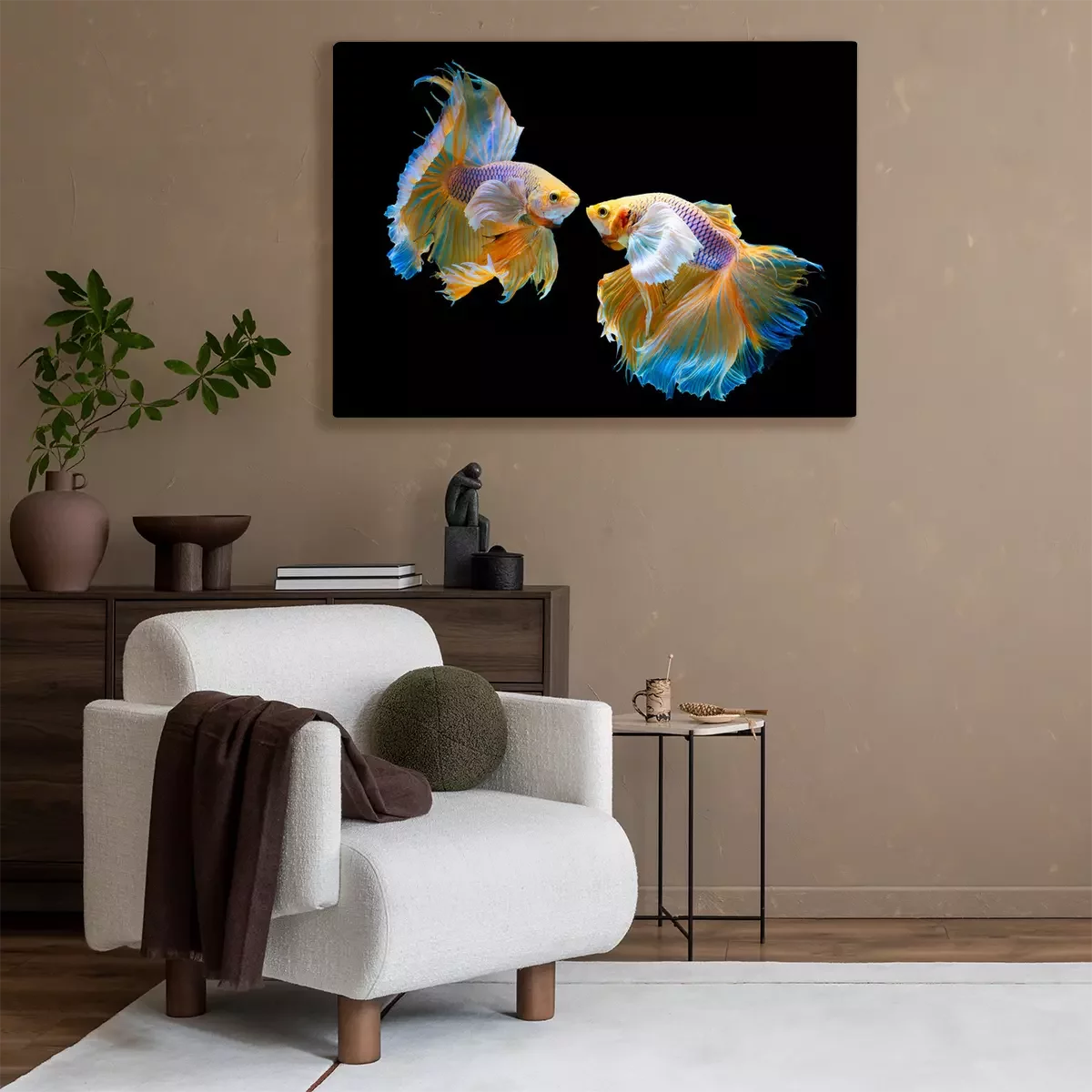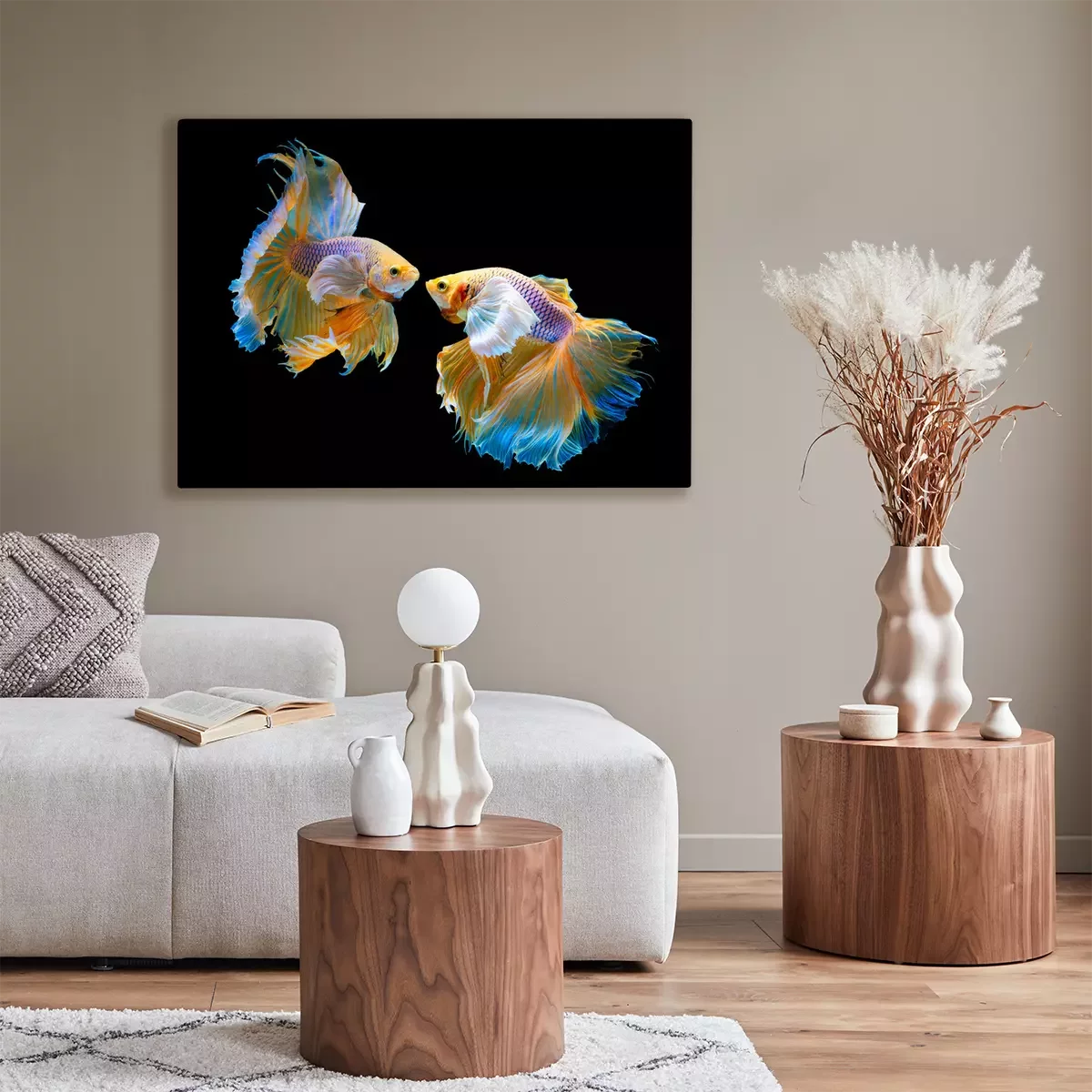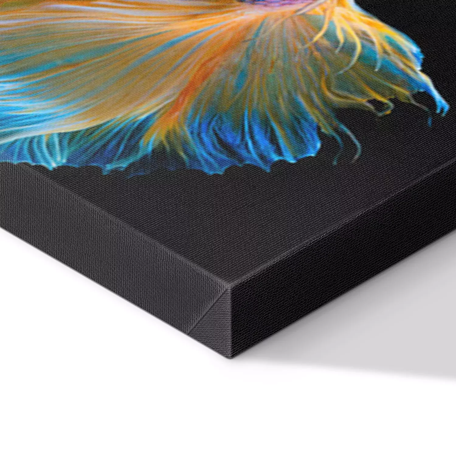 De print wordt aangebracht op hoogwaardig canvas dat op een schildersweefgetouw (spieraam) wordt gespannen. Omdat de print de zijranden bedekt, hoeft het ontwerp niet met een extra kader te worden omlijst. Wij raden ook composities aan die uit meerdere foto's bestaan en zo een coherente compositie vormen.