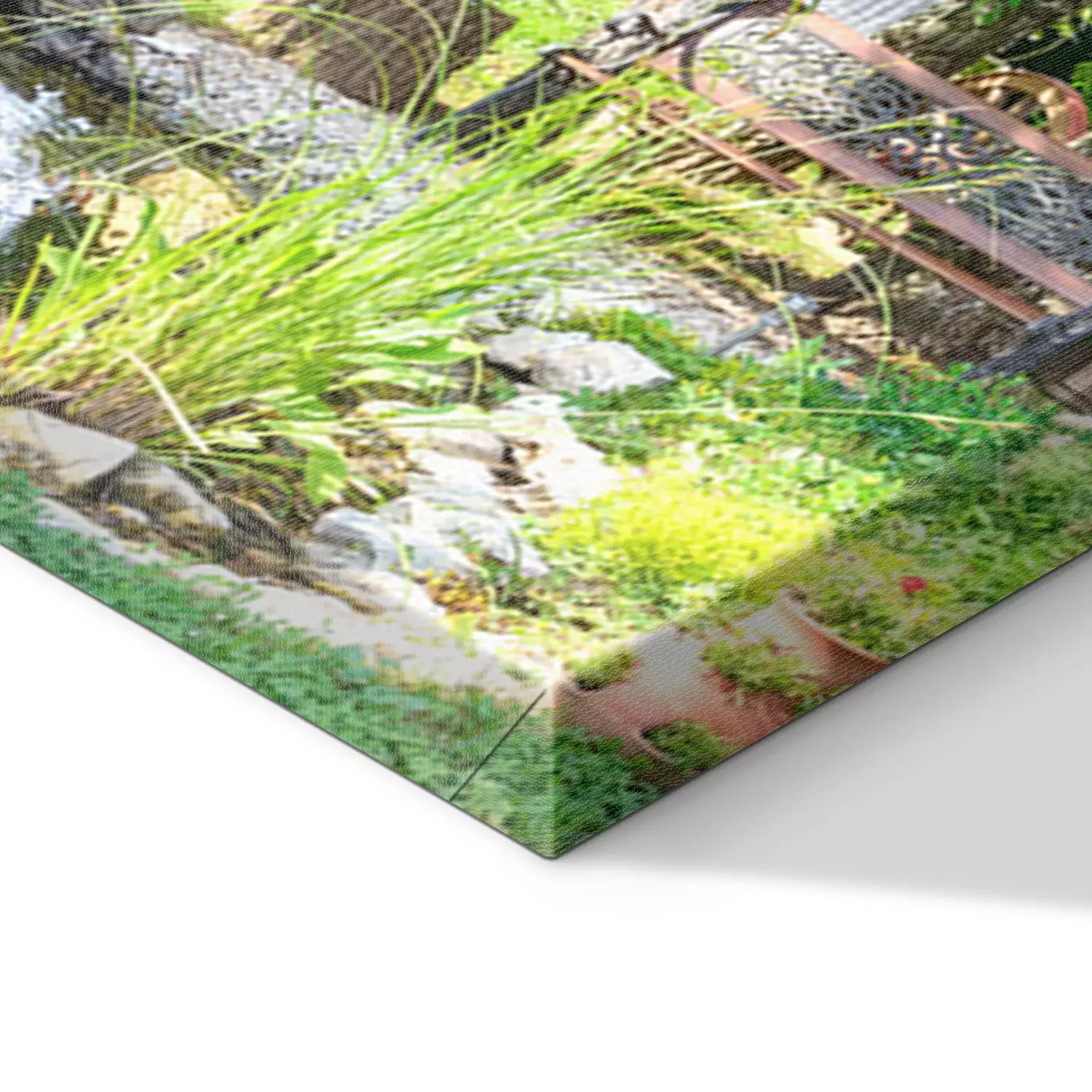 De print wordt aangebracht op hoogwaardig canvas dat op een schildersweefgetouw (spieraam) wordt gespannen. Omdat de print de zijranden bedekt, hoeft het ontwerp niet met een extra kader te worden omlijst. Wij raden ook composities aan die uit meerdere foto's bestaan en zo een coherente compositie vormen.