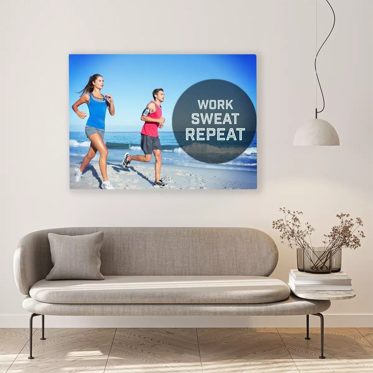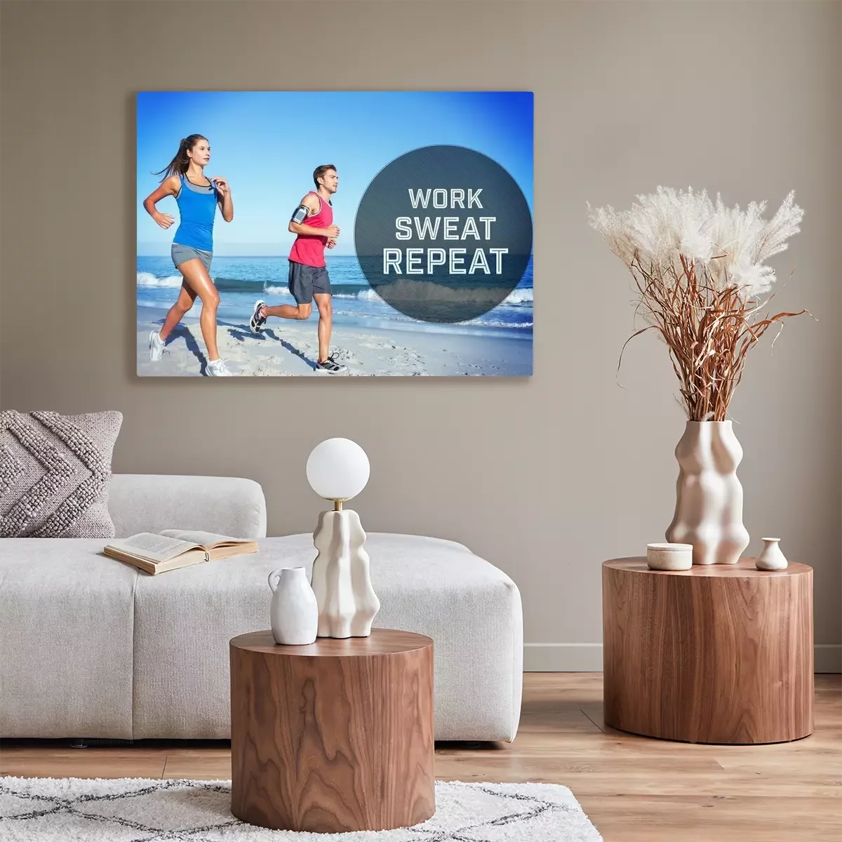 De print wordt aangebracht op hoogwaardig canvas dat op een schildersweefgetouw (spieraam) wordt gespannen. Omdat de print de zijranden bedekt, hoeft het ontwerp niet met een extra kader te worden omlijst. Wij raden ook composities aan die uit meerdere foto's bestaan en zo een coherente compositie vormen.