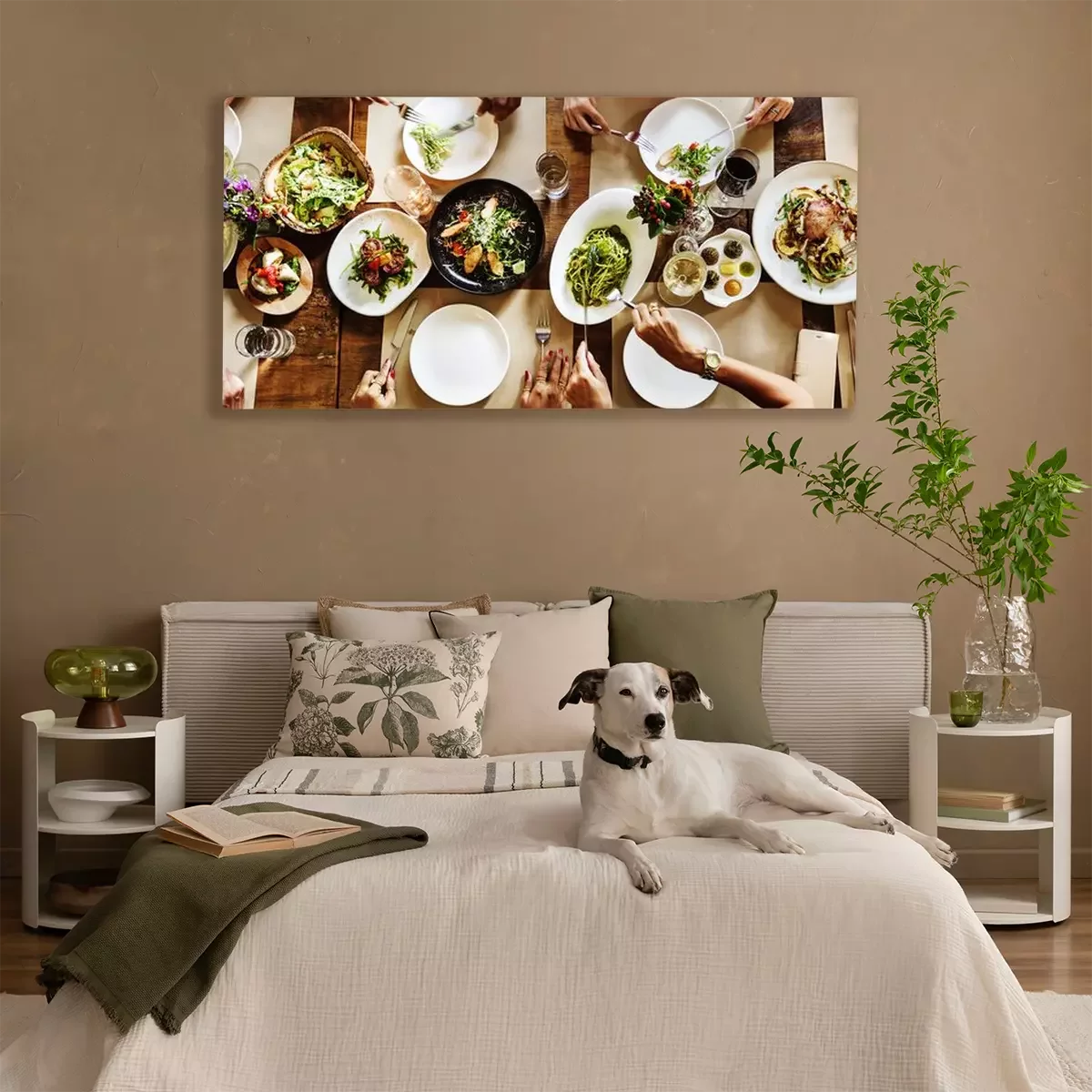 De print wordt aangebracht op hoogwaardig canvas dat op een schildersweefgetouw (spieraam) wordt gespannen. Omdat de print de zijranden bedekt, hoeft het ontwerp niet met een extra kader te worden omlijst. Wij raden ook composities aan die uit meerdere foto's bestaan en zo een coherente compositie vormen.