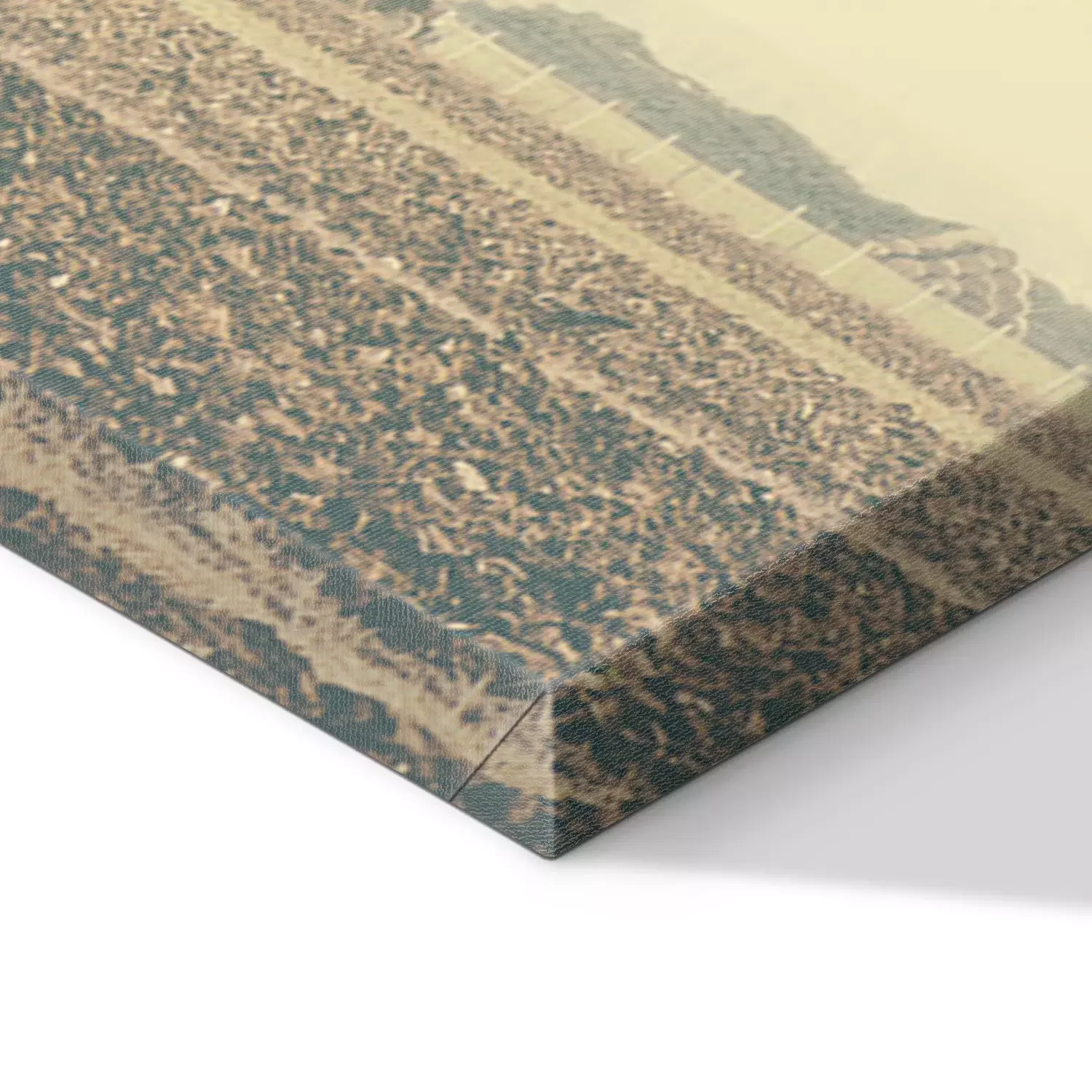 De print wordt aangebracht op hoogwaardig canvas dat op een schildersweefgetouw (spieraam) wordt gespannen. Omdat de print de zijranden bedekt, hoeft het ontwerp niet met een extra kader te worden omlijst. Wij raden ook composities aan die uit meerdere foto's bestaan en zo een coherente compositie vormen.