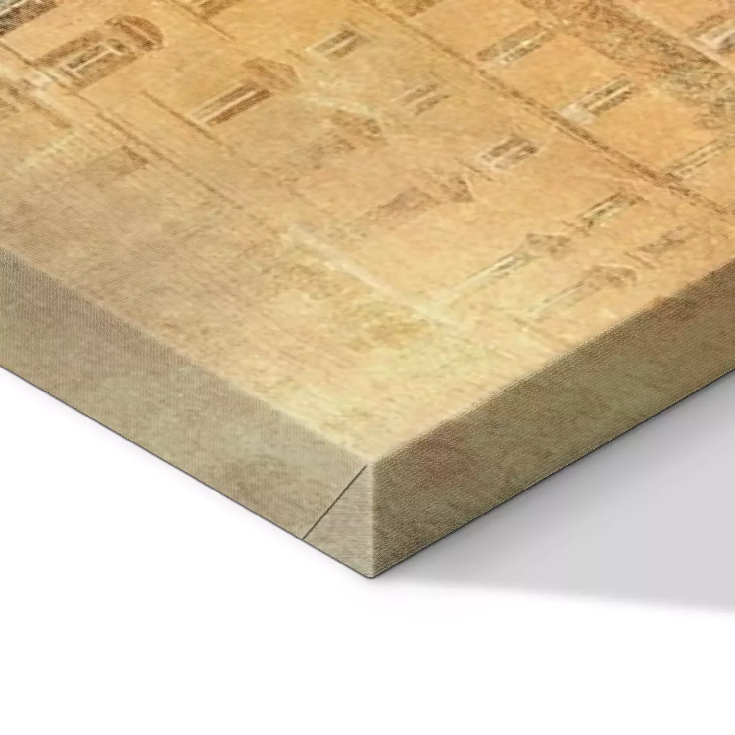 De print wordt aangebracht op hoogwaardig canvas dat op een schildersweefgetouw (spieraam) wordt gespannen. Omdat de print de zijranden bedekt, hoeft het ontwerp niet met een extra kader te worden omlijst. Wij raden ook composities aan die uit meerdere foto's bestaan en zo een coherente compositie vormen.