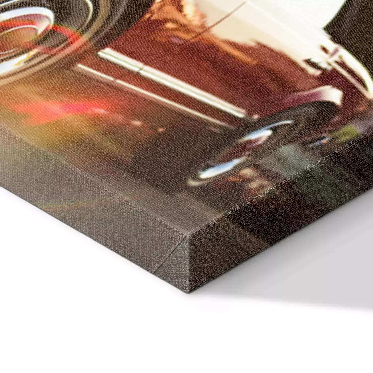 De print wordt aangebracht op hoogwaardig canvas dat op een schildersweefgetouw (spieraam) wordt gespannen. Omdat de print de zijranden bedekt, hoeft het ontwerp niet met een extra kader te worden omlijst. Wij raden ook composities aan die uit meerdere foto's bestaan en zo een coherente compositie vormen.
