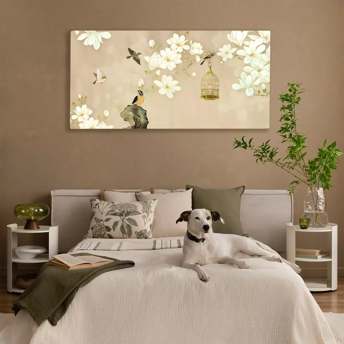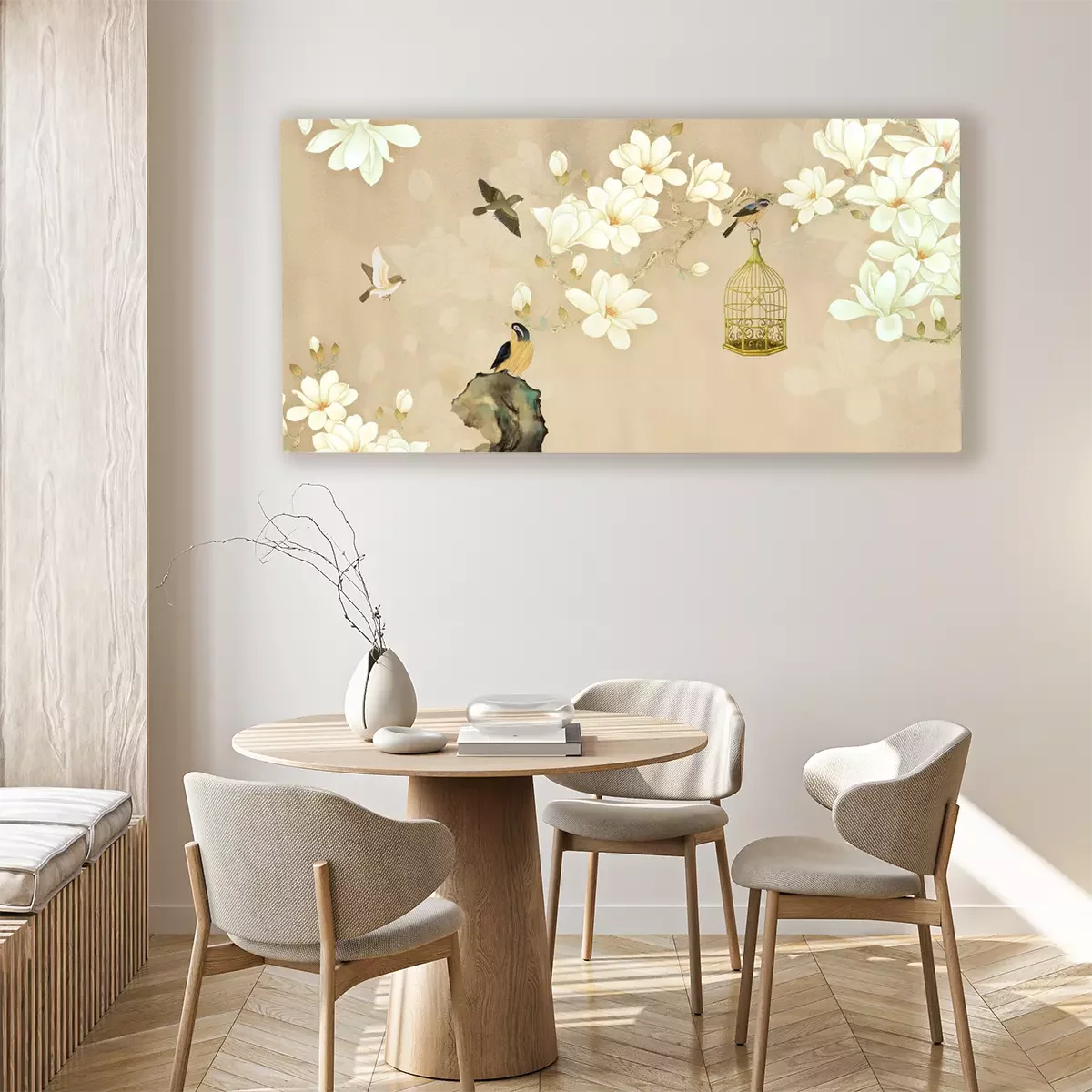 Vogels op de bloeiende magnolia takken