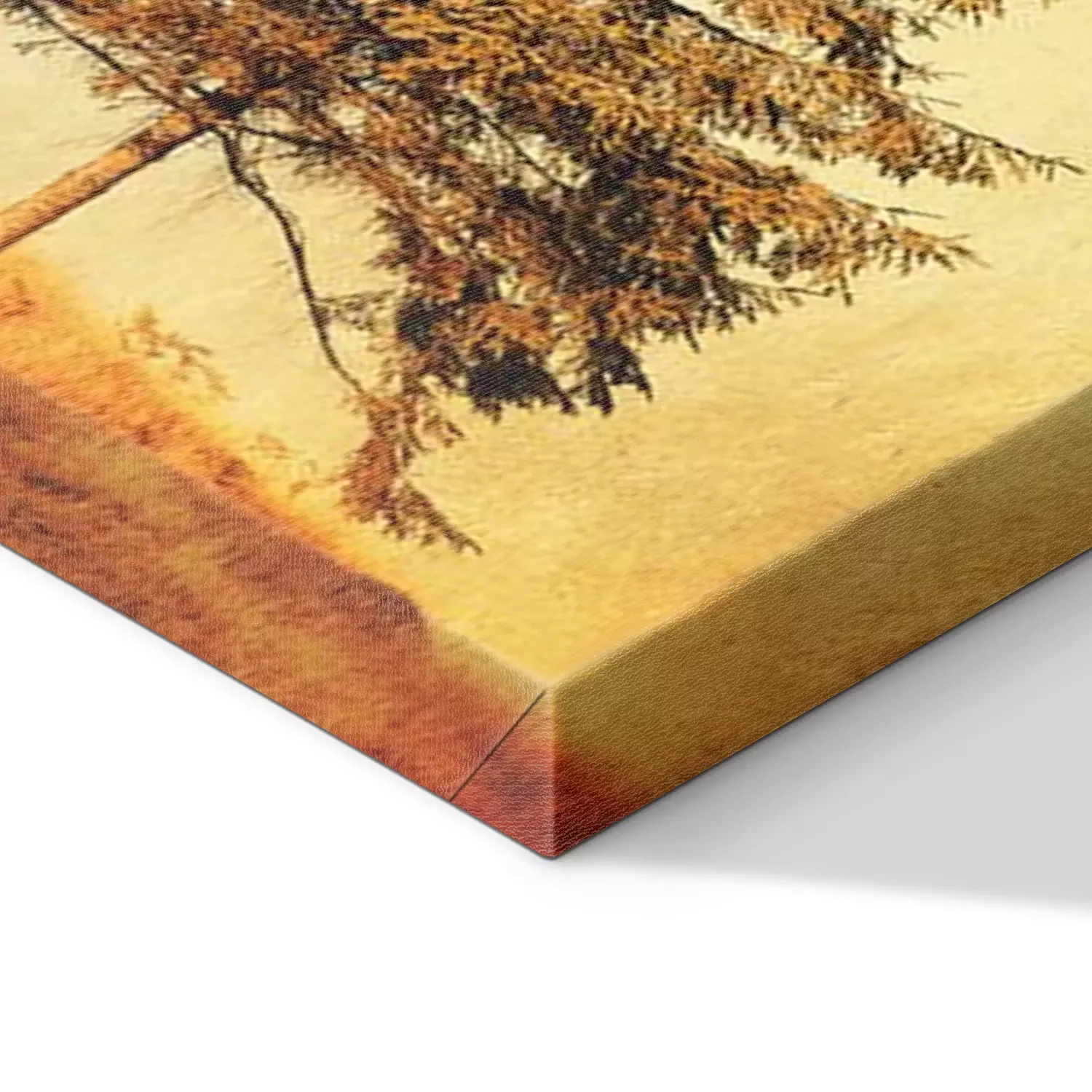 De print wordt aangebracht op hoogwaardig canvas dat op een schildersweefgetouw (spieraam) wordt gespannen. Omdat de print de zijranden bedekt, hoeft het ontwerp niet met een extra kader te worden omlijst. Wij raden ook composities aan die uit meerdere foto's bestaan en zo een coherente compositie vormen.