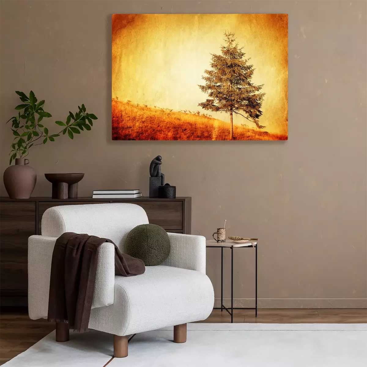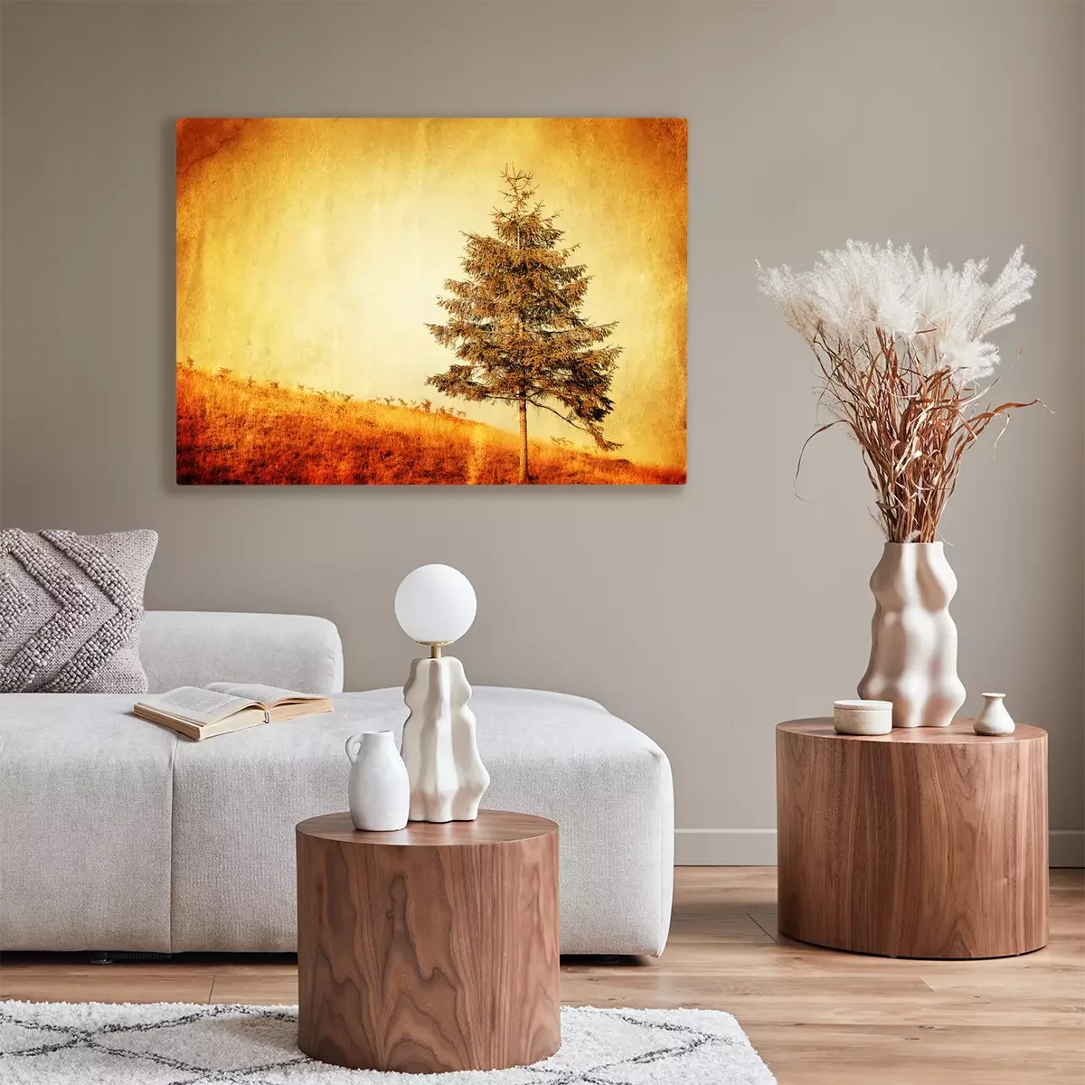 Canvas Retro boom op de heuvel