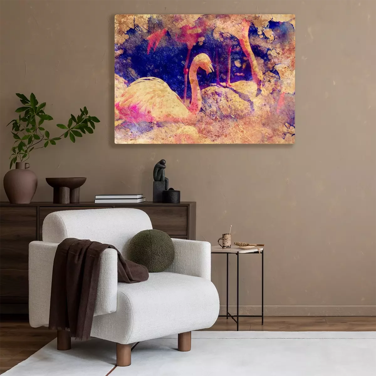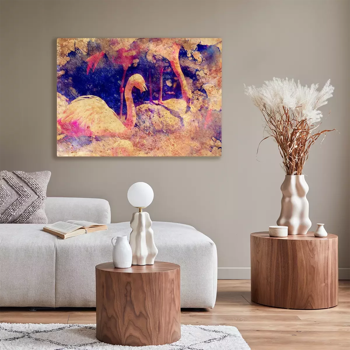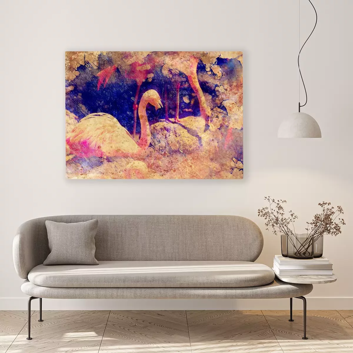 Flamingo's en aquarelvlekken