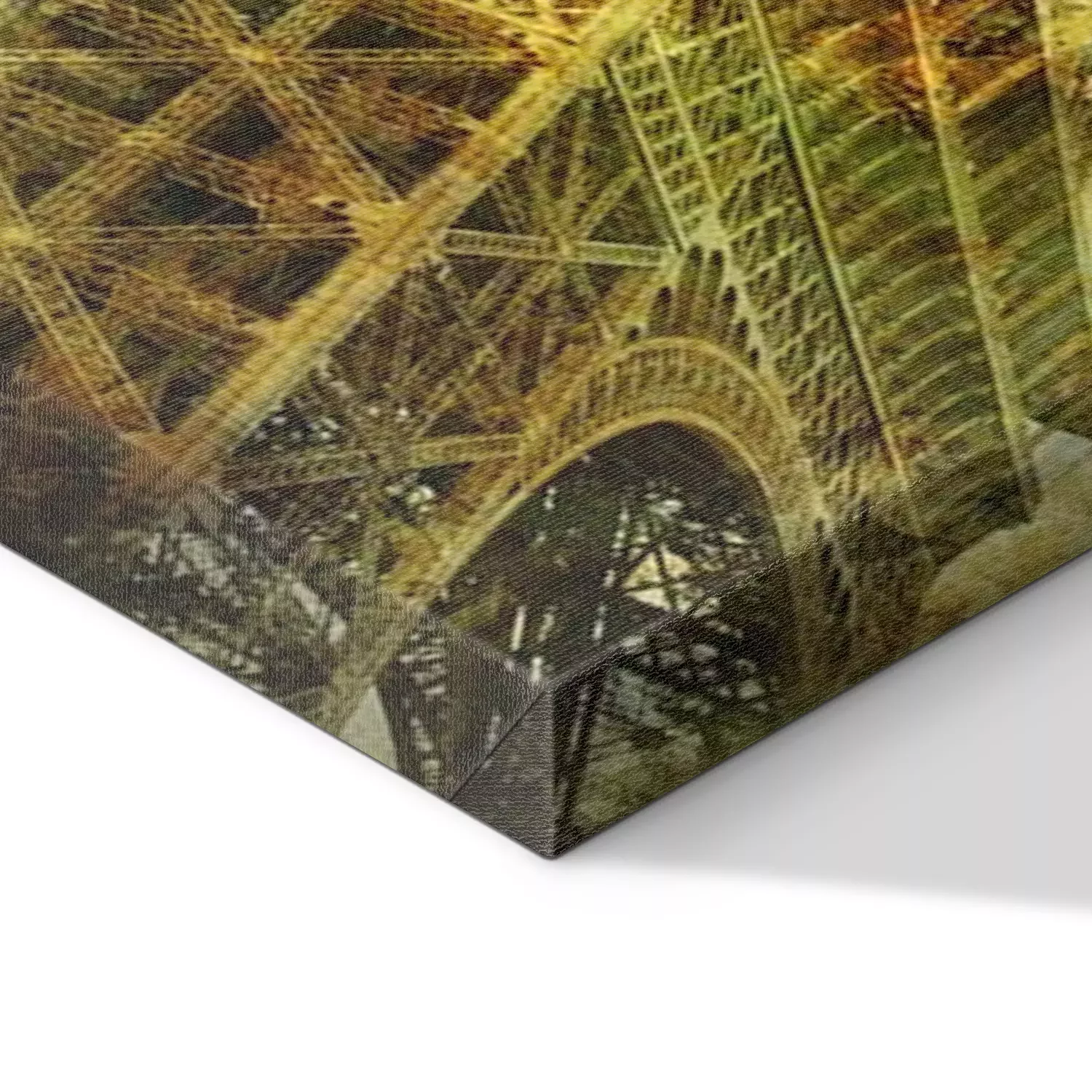De print wordt aangebracht op hoogwaardig canvas dat op een schildersweefgetouw (spieraam) wordt gespannen. Omdat de print de zijranden bedekt, hoeft het ontwerp niet met een extra kader te worden omlijst. Wij raden ook composities aan die uit meerdere foto's bestaan en zo een coherente compositie vormen.