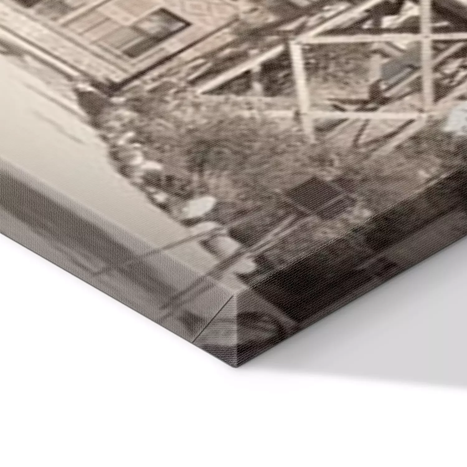 De print wordt aangebracht op hoogwaardig canvas dat op een schildersweefgetouw (spieraam) wordt gespannen. Omdat de print de zijranden bedekt, hoeft het ontwerp niet met een extra kader te worden omlijst. Wij raden ook composities aan die uit meerdere foto's bestaan en zo een coherente compositie vormen.
