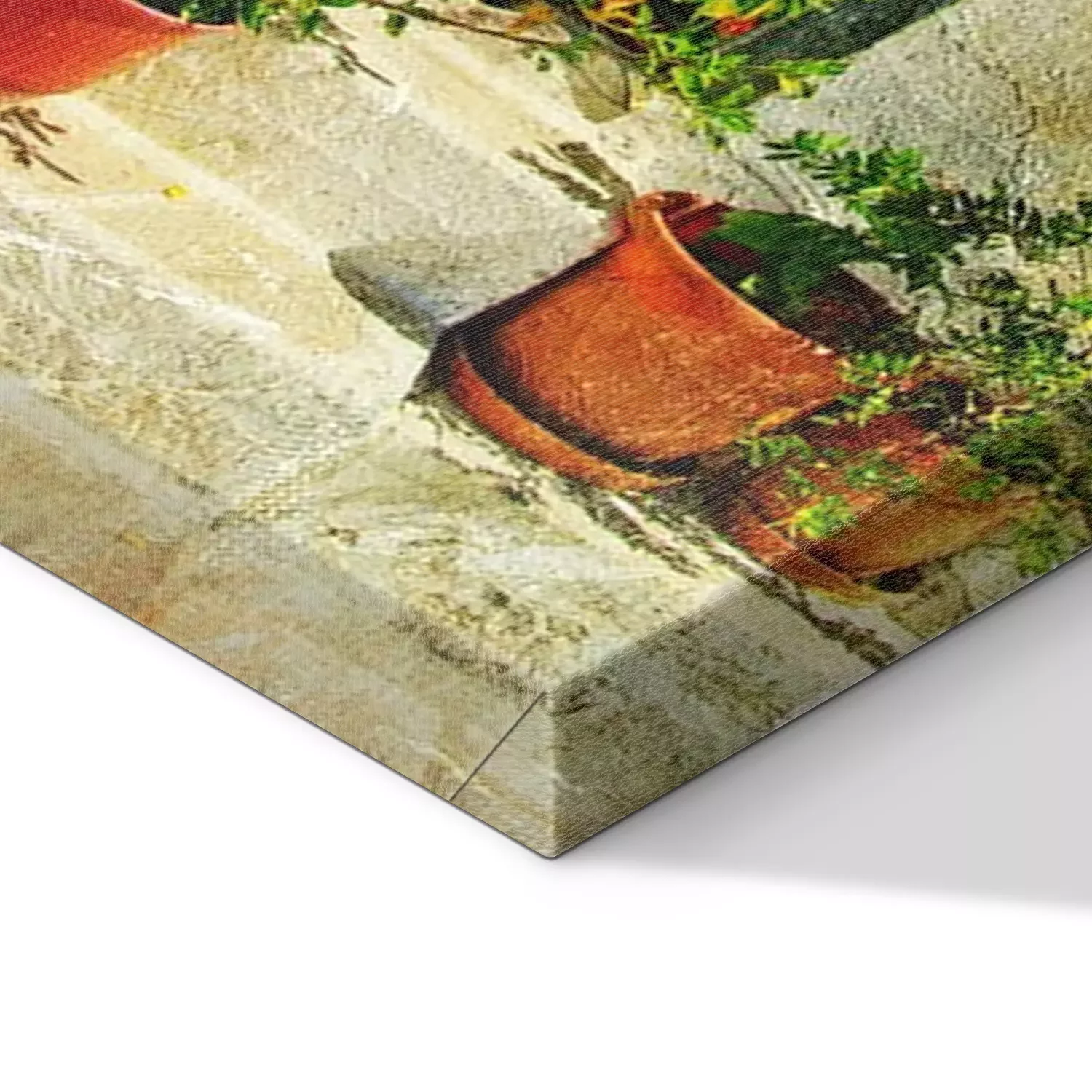 De print wordt aangebracht op hoogwaardig canvas dat op een schildersweefgetouw (spieraam) wordt gespannen. Omdat de print de zijranden bedekt, hoeft het ontwerp niet met een extra kader te worden omlijst. Wij raden ook composities aan die uit meerdere foto's bestaan en zo een coherente compositie vormen.