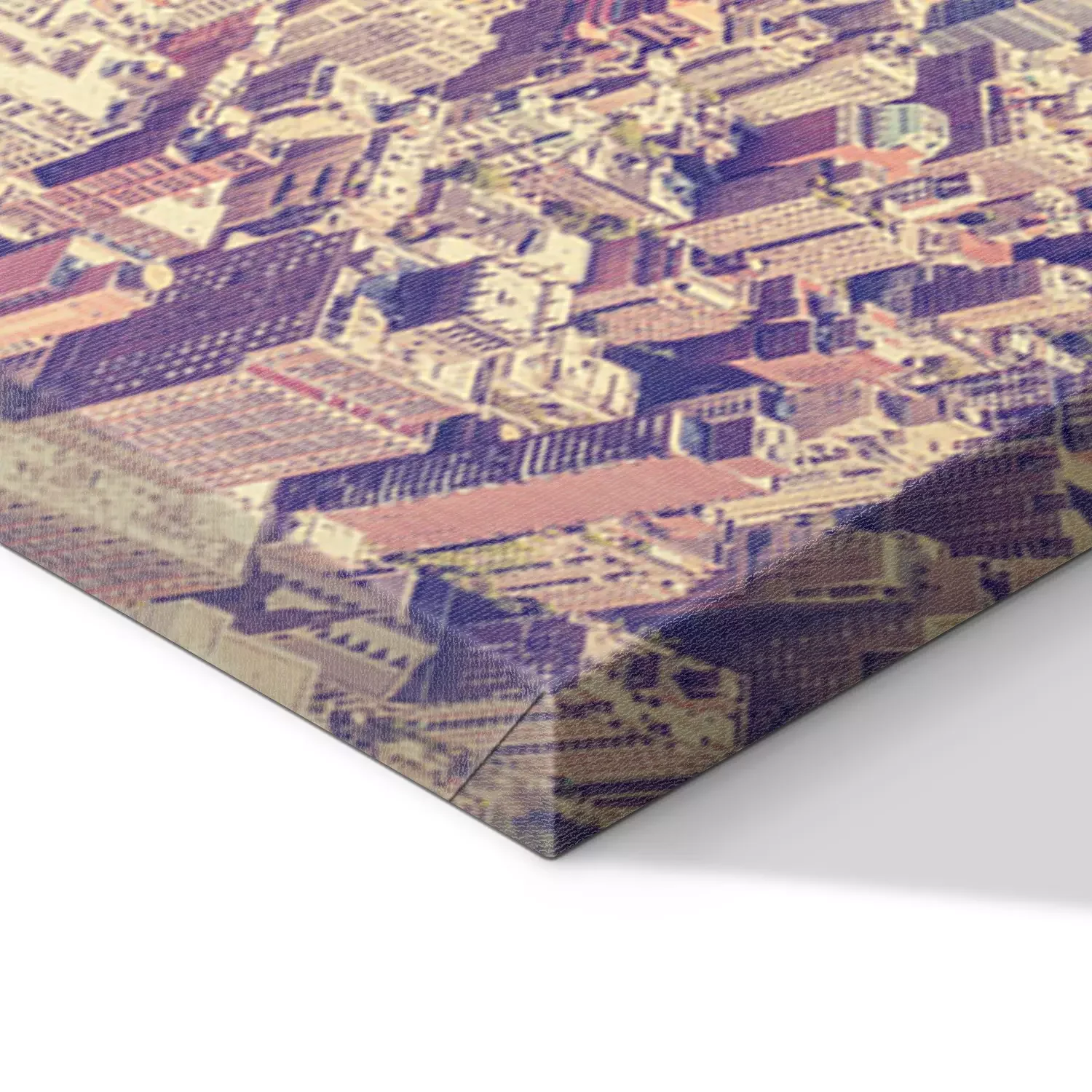 De print wordt aangebracht op hoogwaardig canvas dat op een schildersweefgetouw (spieraam) wordt gespannen. Omdat de print de zijranden bedekt, hoeft het ontwerp niet met een extra kader te worden omlijst. Wij raden ook composities aan die uit meerdere foto's bestaan en zo een coherente compositie vormen.