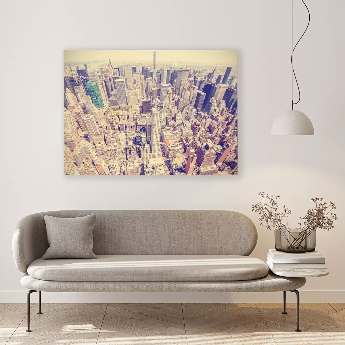 Canvas: Retro gestileerde Luchtfoto van Manhattan, New York, USA.