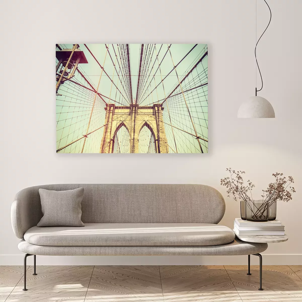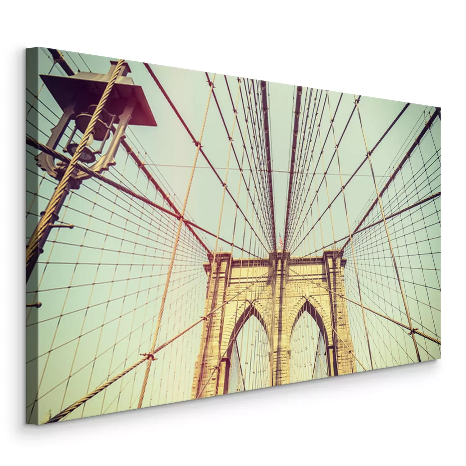 Canvas: Retro getinte foto van de Brooklyn Bridge, NYC.