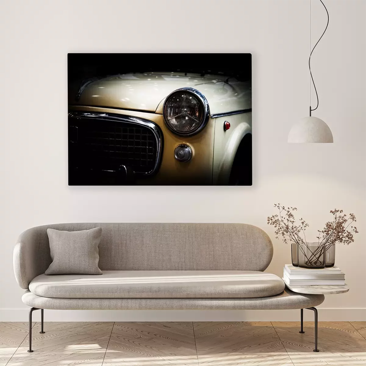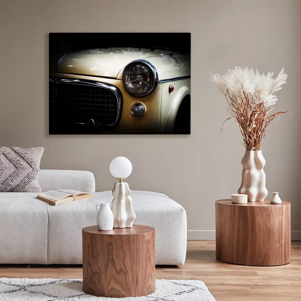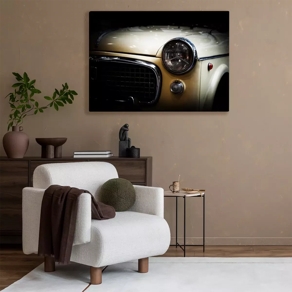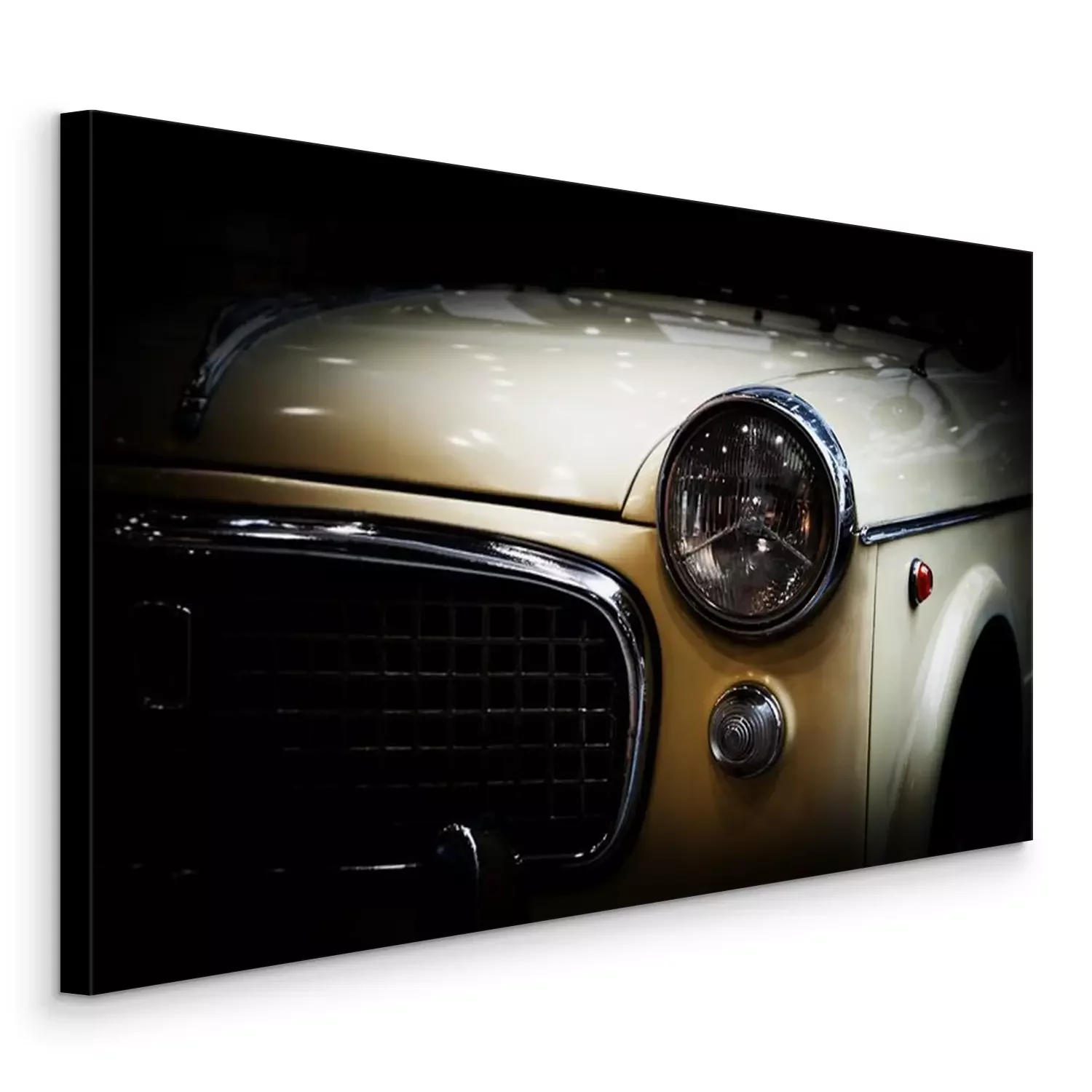 Canvas: Retro klassieke auto op een zwarte achtergrond. Wijnoogst, elegant