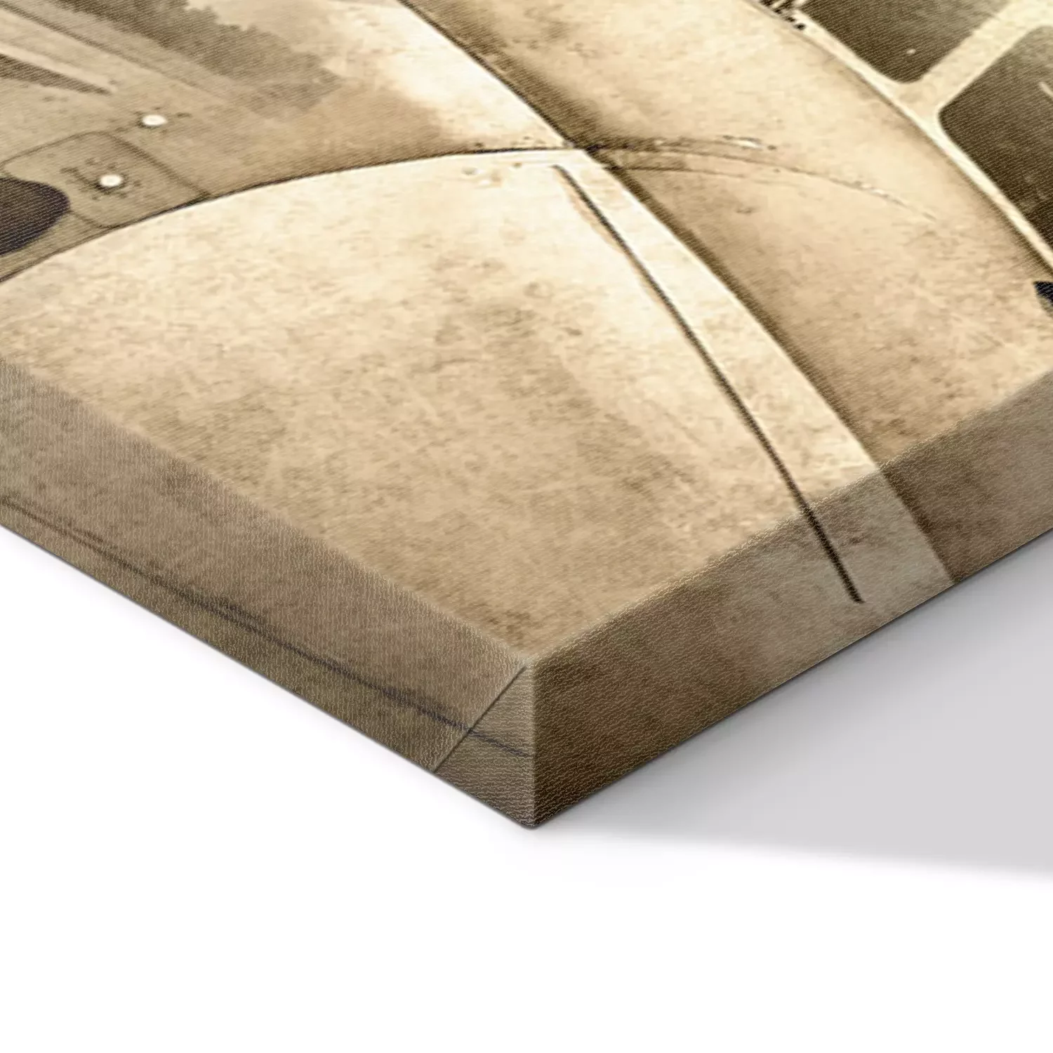 De print wordt aangebracht op hoogwaardig canvas dat op een schildersweefgetouw (spieraam) wordt gespannen. Omdat de print de zijranden bedekt, hoeft het ontwerp niet met een extra kader te worden omlijst. Wij raden ook composities aan die uit meerdere foto's bestaan en zo een coherente compositie vormen.