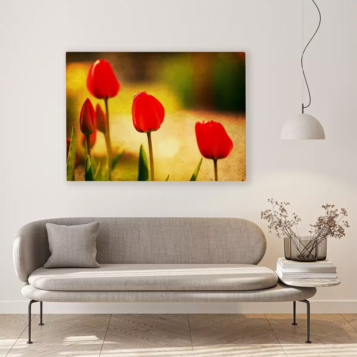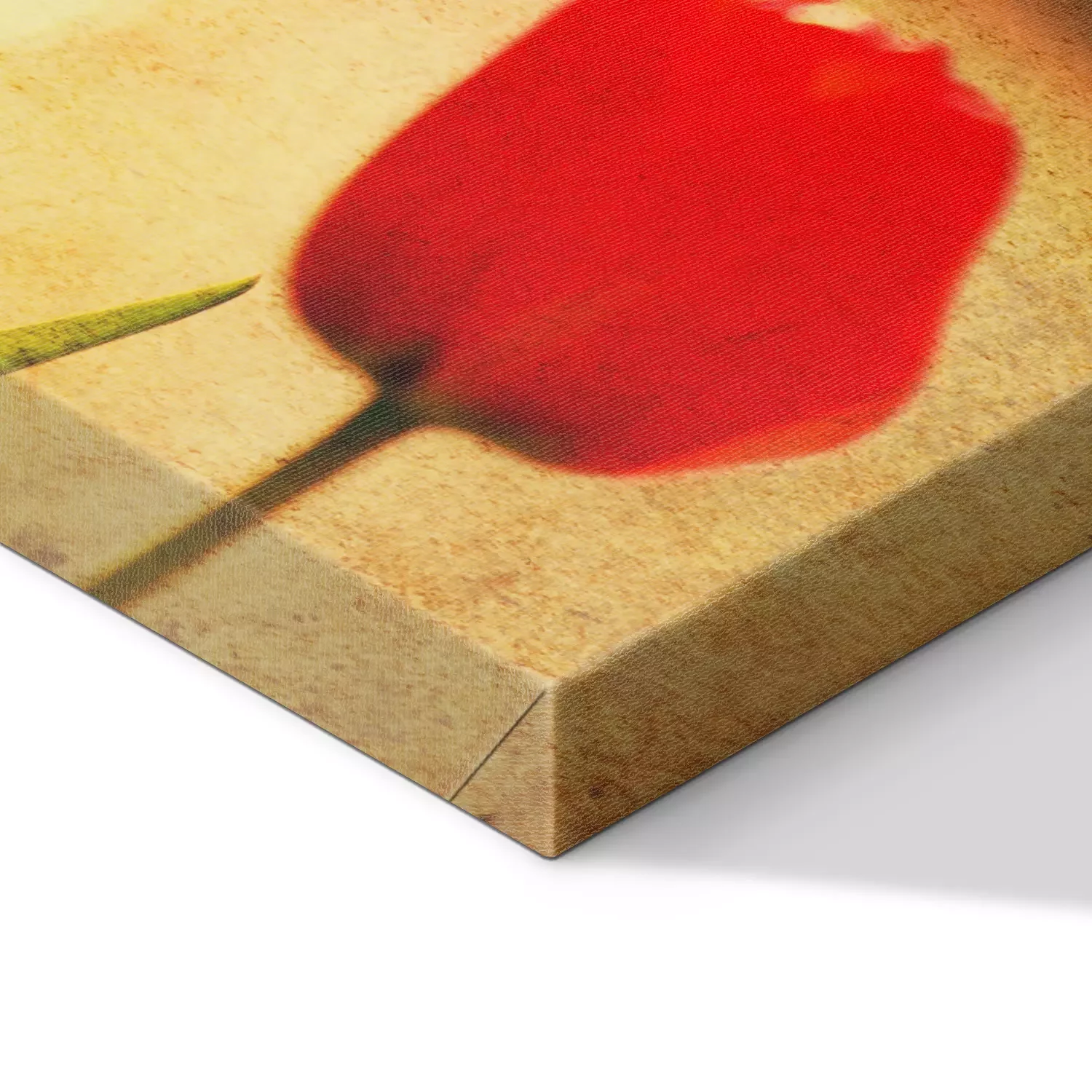 De print wordt aangebracht op hoogwaardig canvas dat op een schildersweefgetouw (spieraam) wordt gespannen. Omdat de print de zijranden bedekt, hoeft het ontwerp niet met een extra kader te worden omlijst. Wij raden ook composities aan die uit meerdere foto's bestaan en zo een coherente compositie vormen.