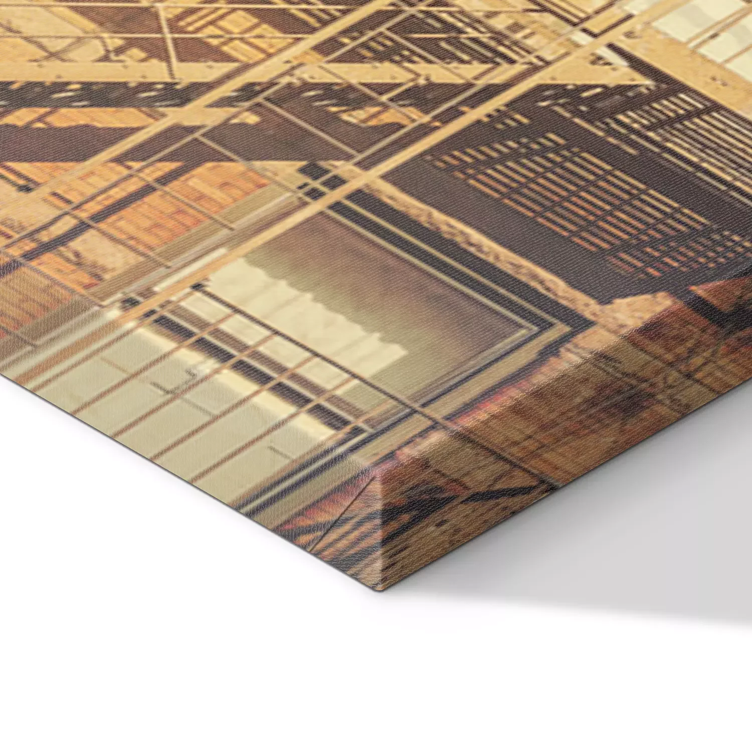 De print wordt aangebracht op hoogwaardig canvas dat op een schildersweefgetouw (spieraam) wordt gespannen. Omdat de print de zijranden bedekt, hoeft het ontwerp niet met een extra kader te worden omlijst. Wij raden ook composities aan die uit meerdere foto's bestaan en zo een coherente compositie vormen.