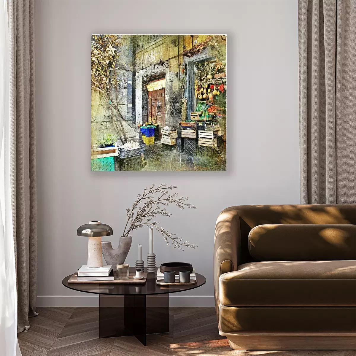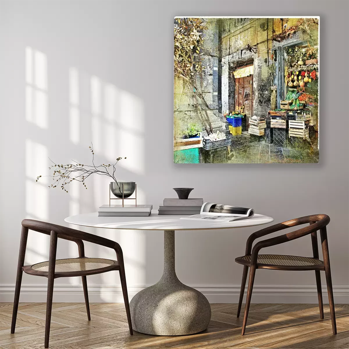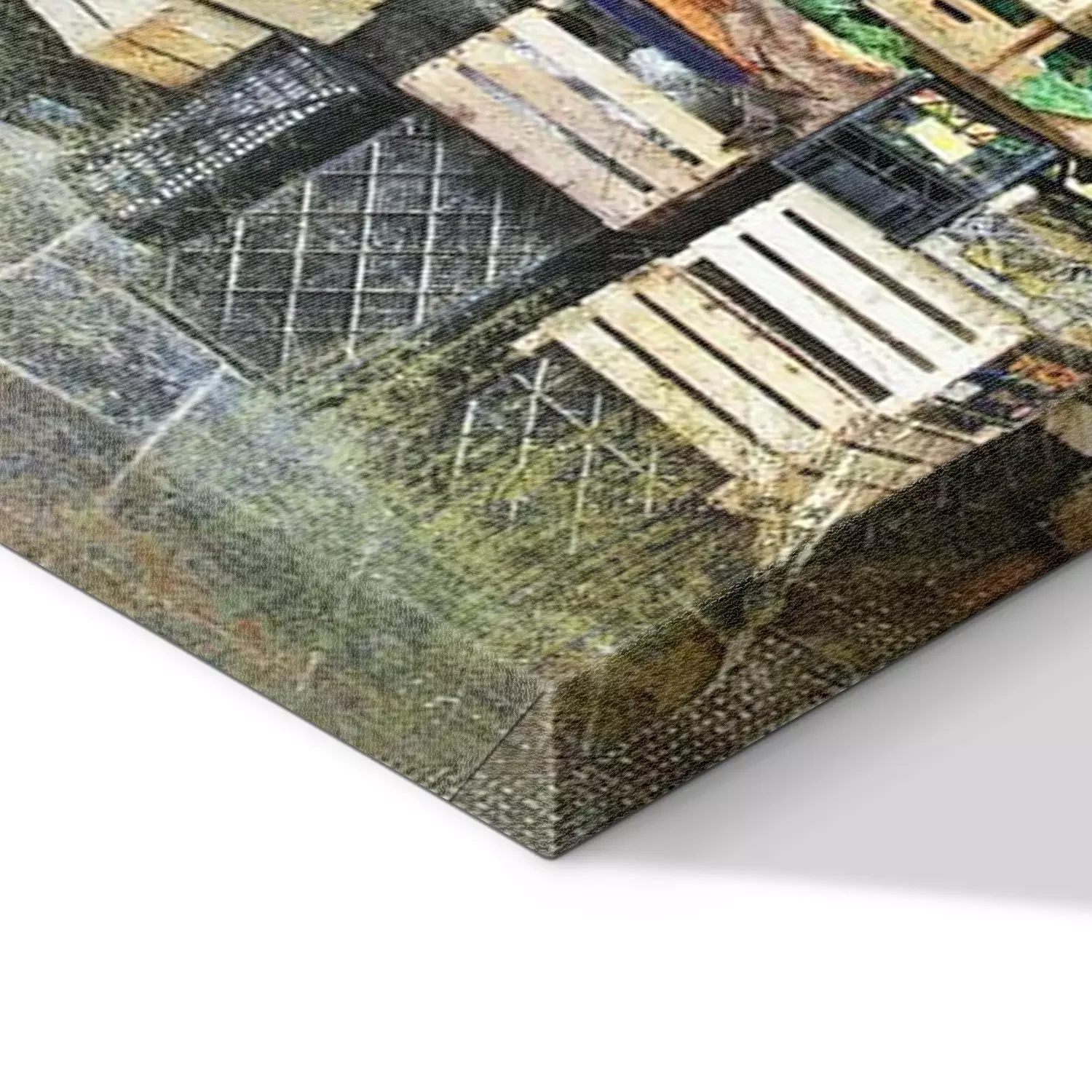 De print wordt aangebracht op hoogwaardig canvas dat op een schildersweefgetouw (spieraam) wordt gespannen. Omdat de print de zijranden bedekt, hoeft het ontwerp niet met een extra kader te worden omlijst. Wij raden ook composities aan die uit meerdere foto's bestaan en zo een coherente compositie vormen.