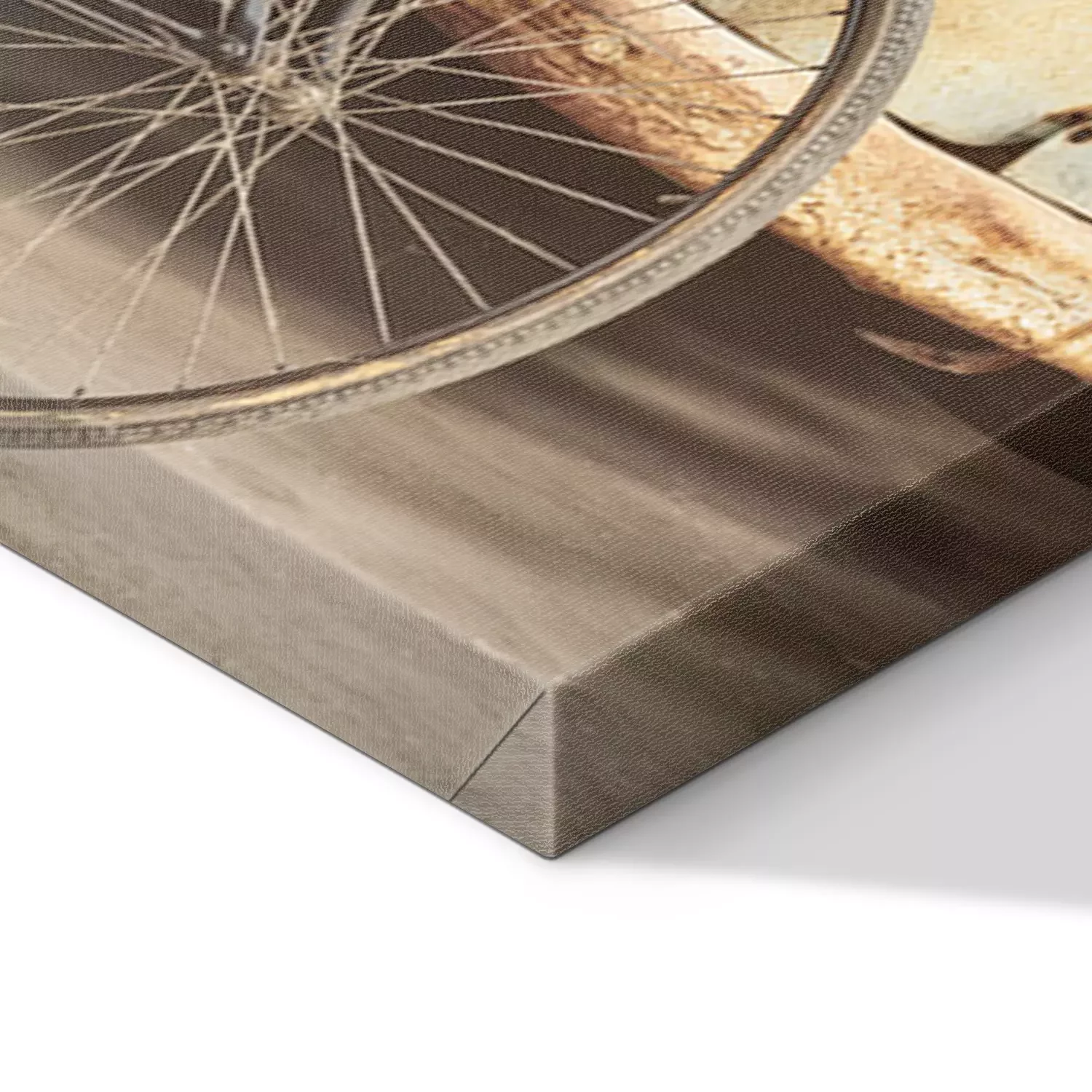 De print wordt aangebracht op hoogwaardig canvas dat op een schildersweefgetouw (spieraam) wordt gespannen. Omdat de print de zijranden bedekt, hoeft het ontwerp niet met een extra kader te worden omlijst. Wij raden ook composities aan die uit meerdere foto's bestaan en zo een coherente compositie vormen.