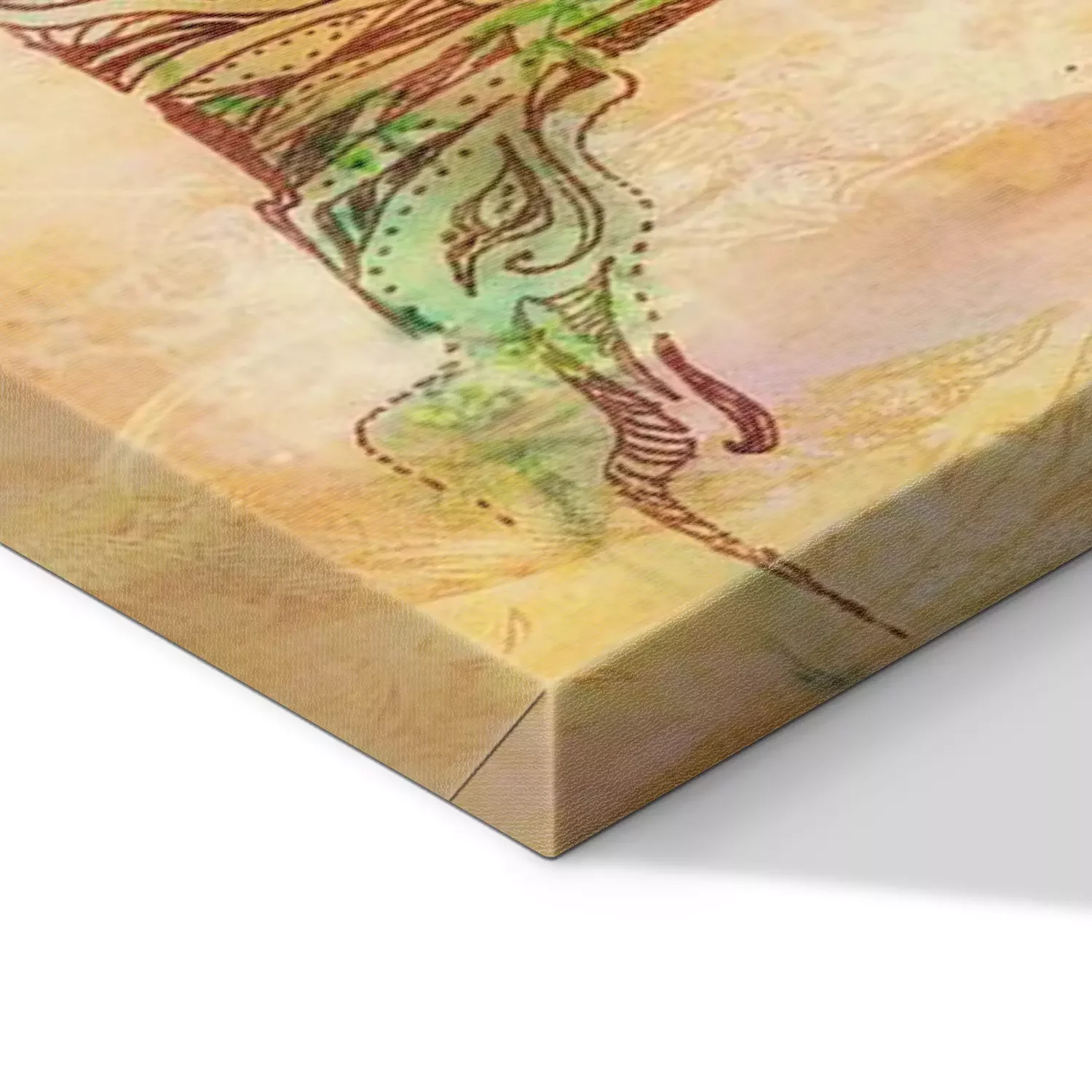 De print wordt aangebracht op hoogwaardig canvas dat op een schildersweefgetouw (spieraam) wordt gespannen. Omdat de print de zijranden bedekt, hoeft het ontwerp niet met een extra kader te worden omlijst. Wij raden ook composities aan die uit meerdere foto's bestaan en zo een coherente compositie vormen.