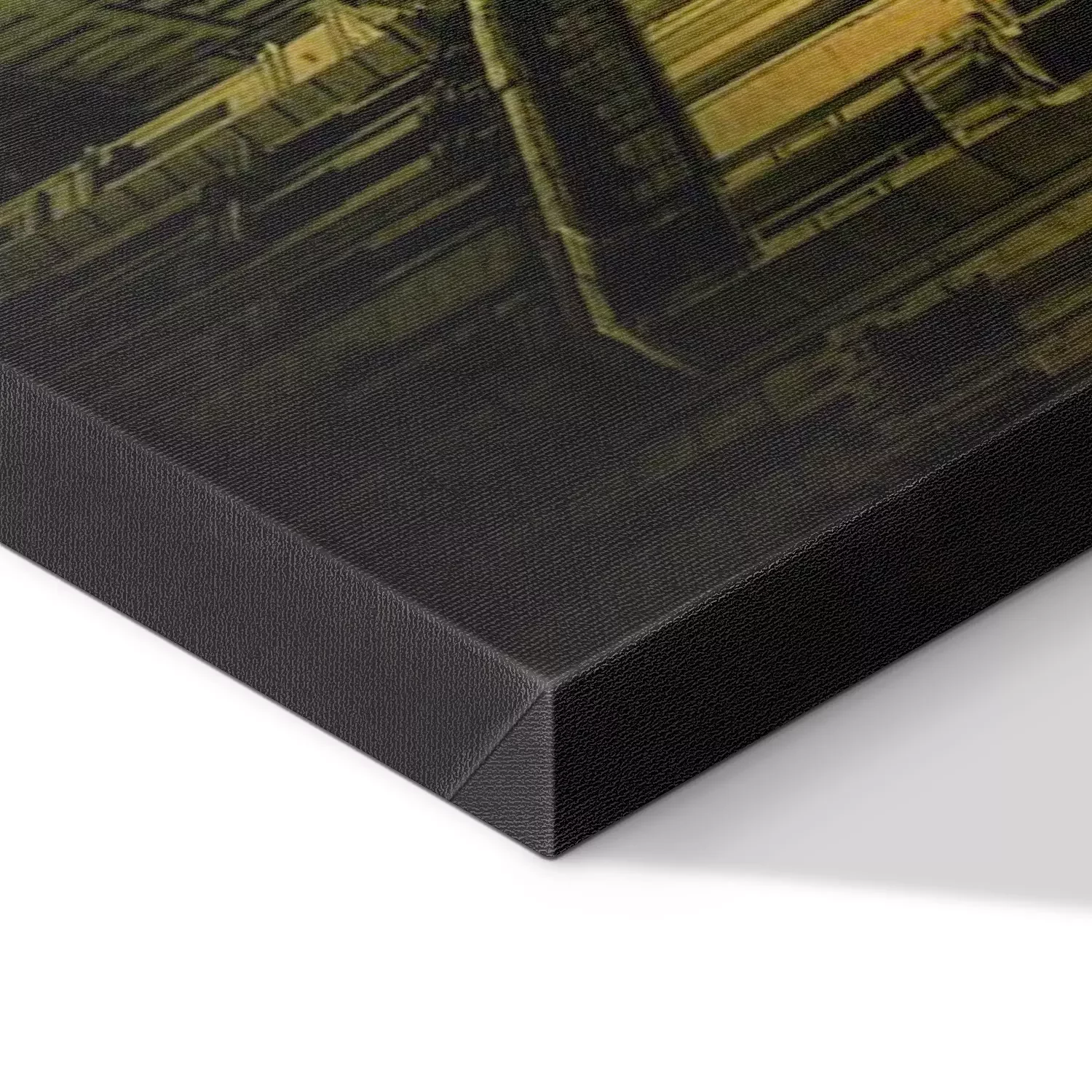 De print wordt aangebracht op hoogwaardig canvas dat op een schildersweefgetouw (spieraam) wordt gespannen. Omdat de print de zijranden bedekt, hoeft het ontwerp niet met een extra kader te worden omlijst. Wij raden ook composities aan die uit meerdere foto's bestaan en zo een coherente compositie vormen.