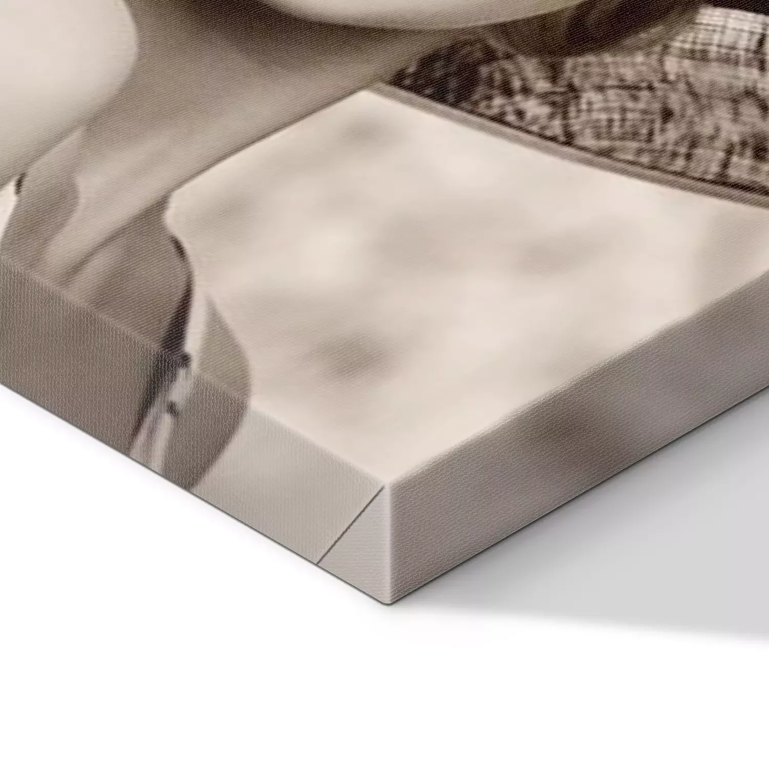 De print wordt aangebracht op hoogwaardig canvas dat op een schildersweefgetouw (spieraam) wordt gespannen. Omdat de print de zijranden bedekt, hoeft het ontwerp niet met een extra kader te worden omlijst. Wij raden ook composities aan die uit meerdere foto's bestaan en zo een coherente compositie vormen.