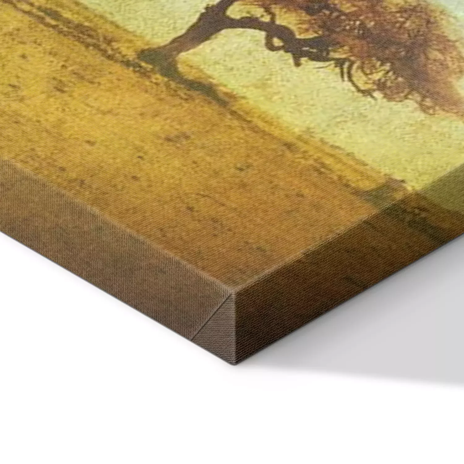 De print wordt aangebracht op hoogwaardig canvas dat op een schildersweefgetouw (spieraam) wordt gespannen. Omdat de print de zijranden bedekt, hoeft het ontwerp niet met een extra kader te worden omlijst. Wij raden ook composities aan die uit meerdere foto's bestaan en zo een coherente compositie vormen.