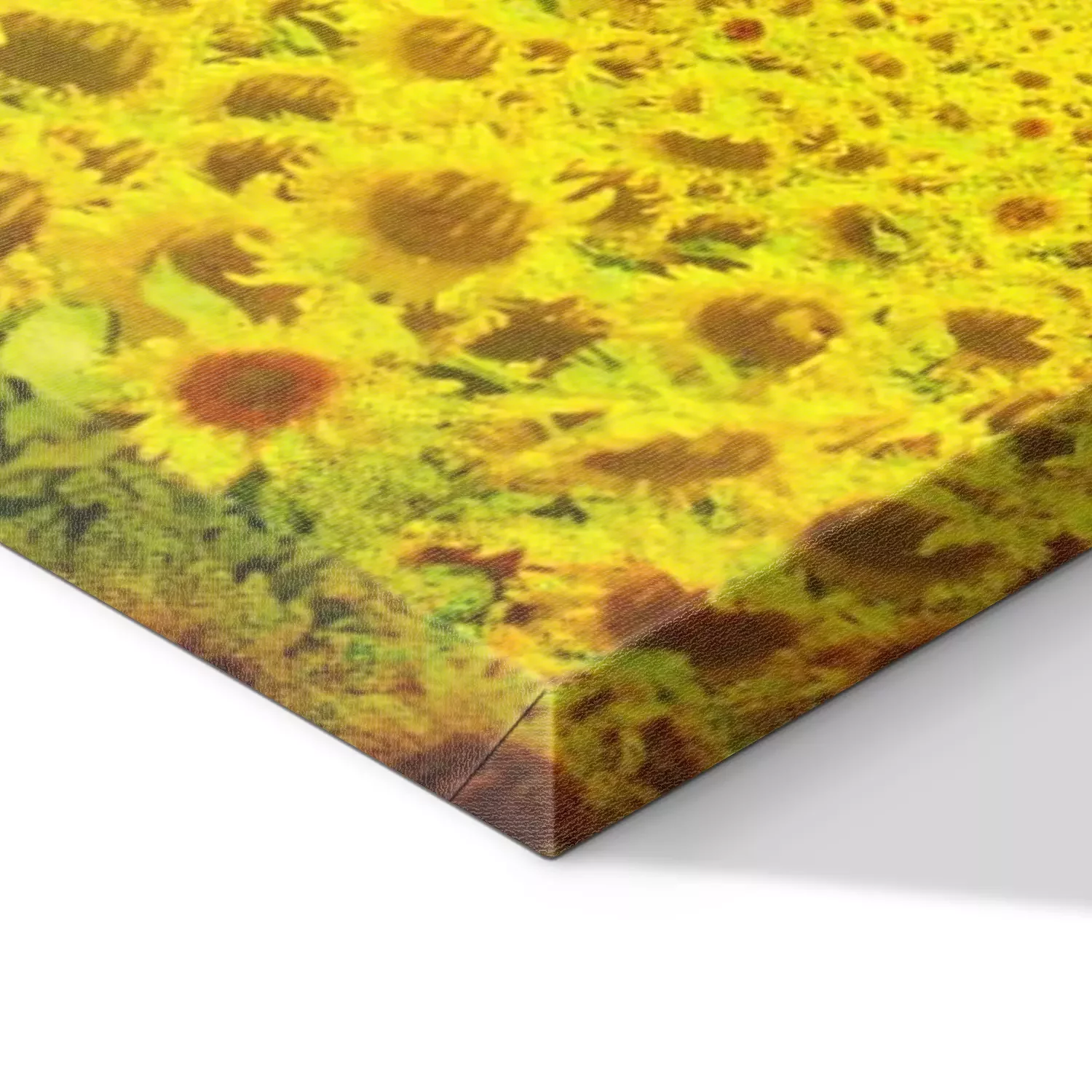 De print wordt aangebracht op hoogwaardig canvas dat op een schildersweefgetouw (spieraam) wordt gespannen. Omdat de print de zijranden bedekt, hoeft het ontwerp niet met een extra kader te worden omlijst. Wij raden ook composities aan die uit meerdere foto's bestaan en zo een coherente compositie vormen.