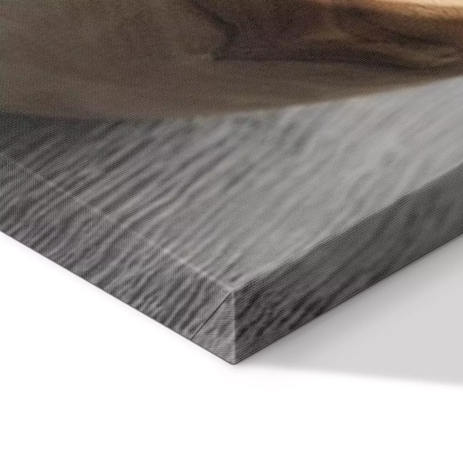 De print wordt aangebracht op hoogwaardig canvas dat op een schildersweefgetouw (spieraam) wordt gespannen. Omdat de print de zijranden bedekt, hoeft het ontwerp niet met een extra kader te worden omlijst. Wij raden ook composities aan die uit meerdere foto's bestaan en zo een coherente compositie vormen.